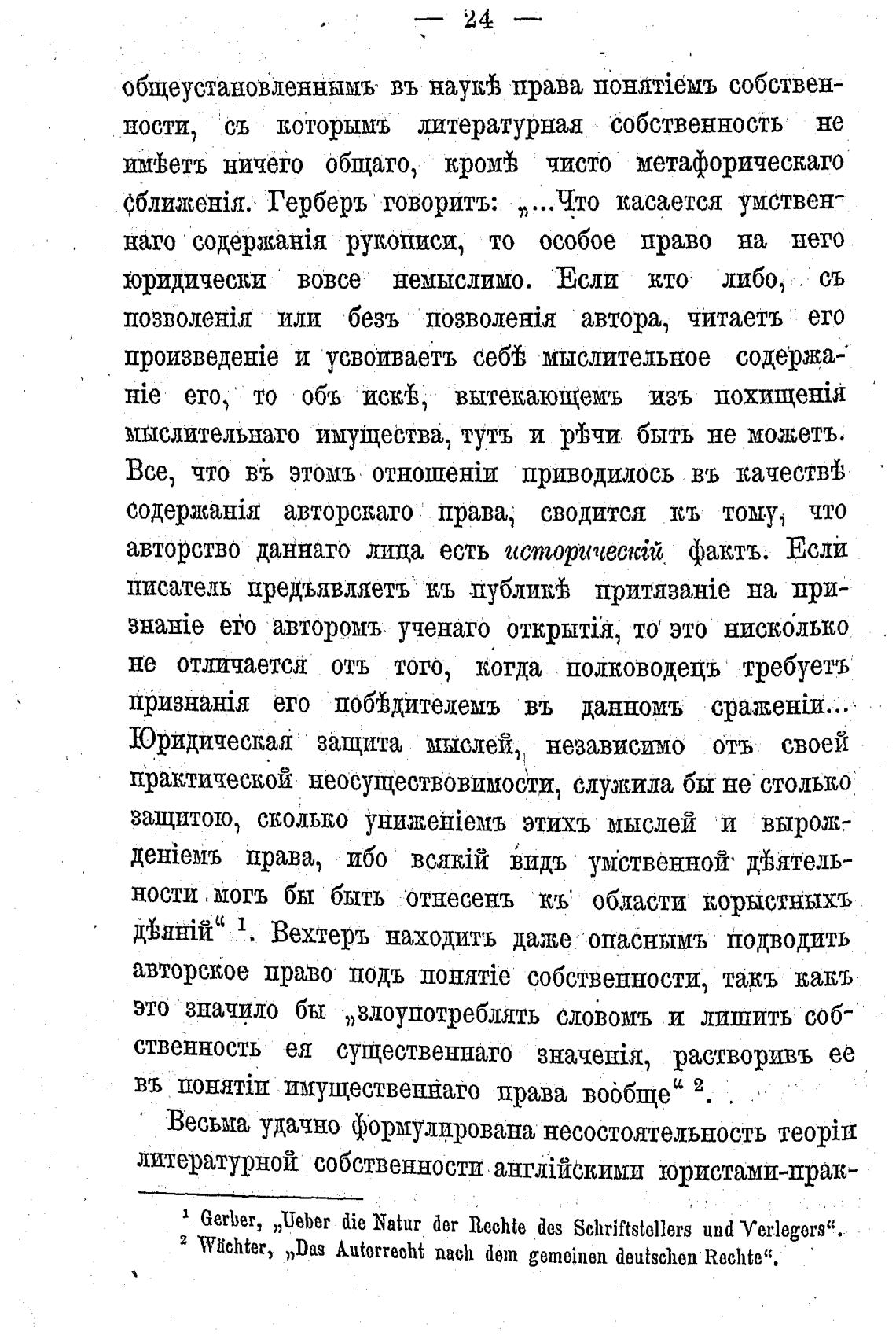 Gerber, „ВеЬег die Natur RechtB des Schriftstellers und Verlegers“.