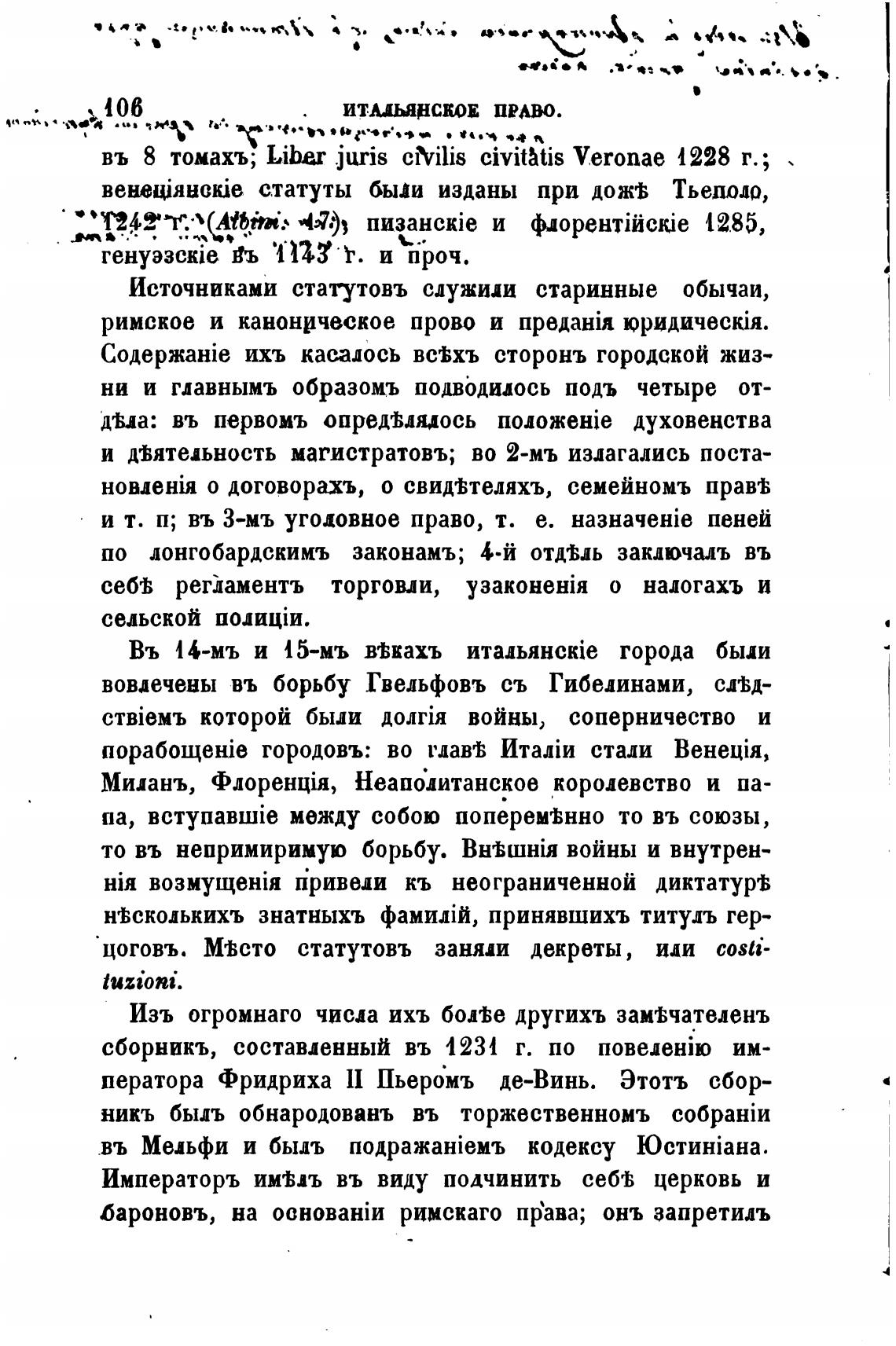 въ 8 томахъ; Libar .juris cMlis civitatis Veronae 4228 г.;