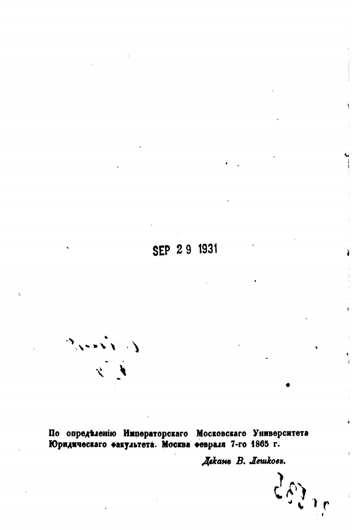 Юридическаго •акуљтета. Москва •еврия 7-го 1865 г.