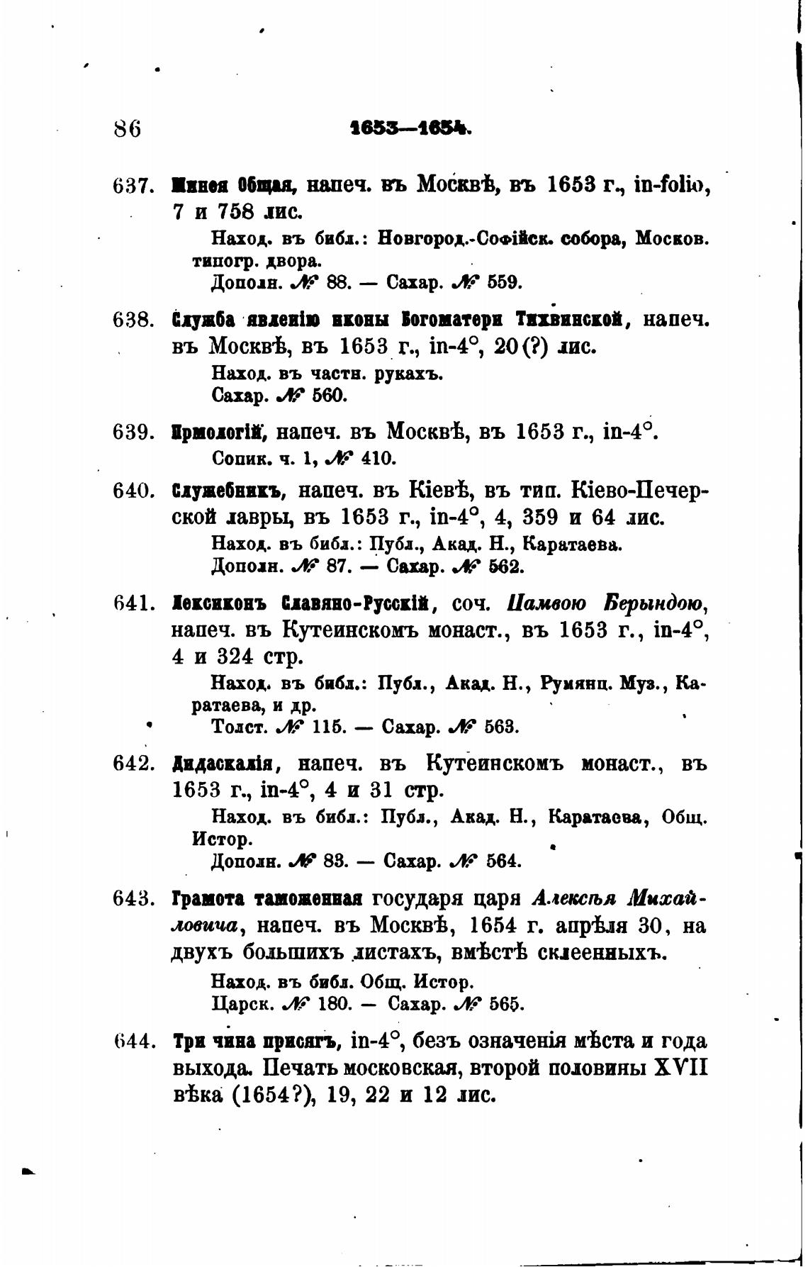 въ МосквВ, въ 1653 г., in-40, 20(?) .шс.
