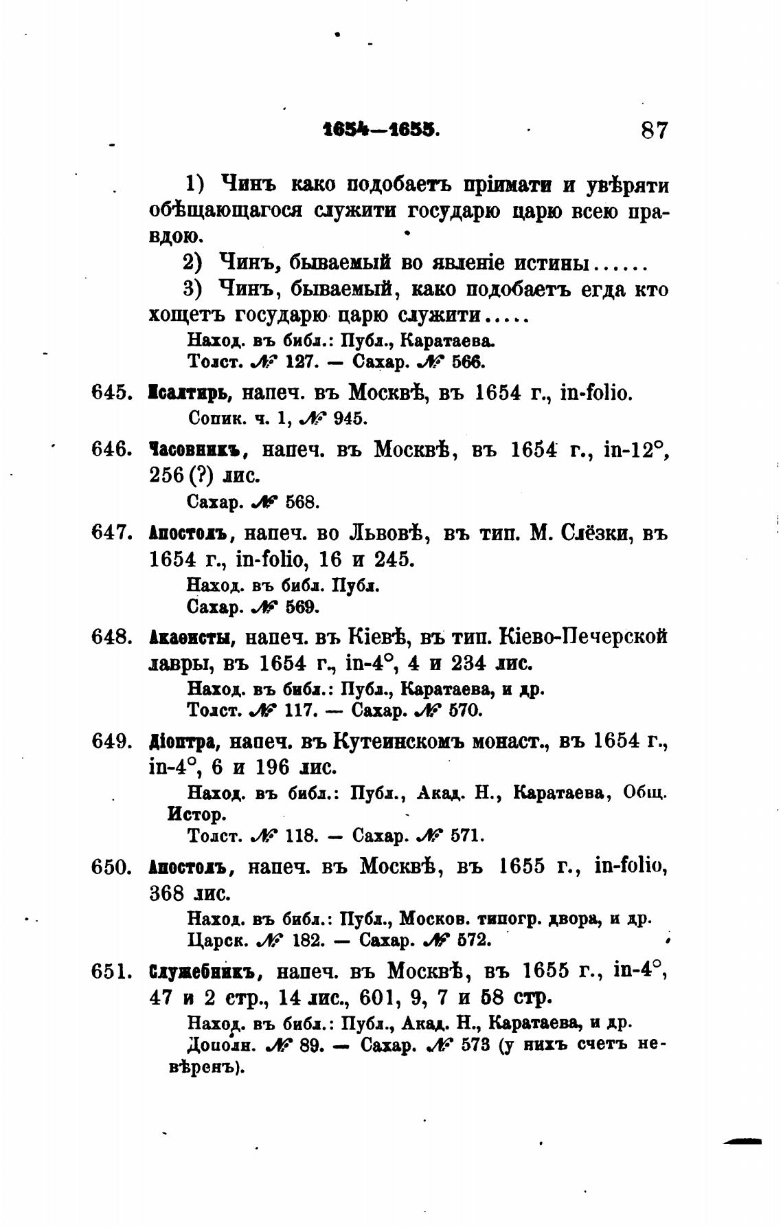 часовникъ, напеч. въ МосквВ, въ 1654 г., in-120,