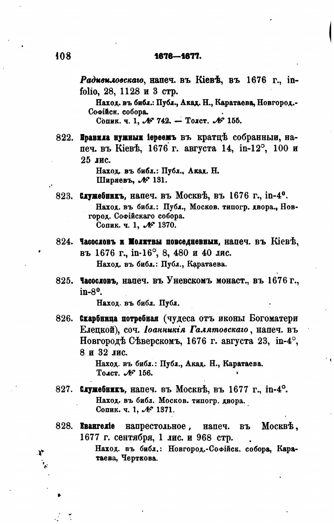 сдужебвикъ, напеч. въ Москй, въ 1676 г., in-40.