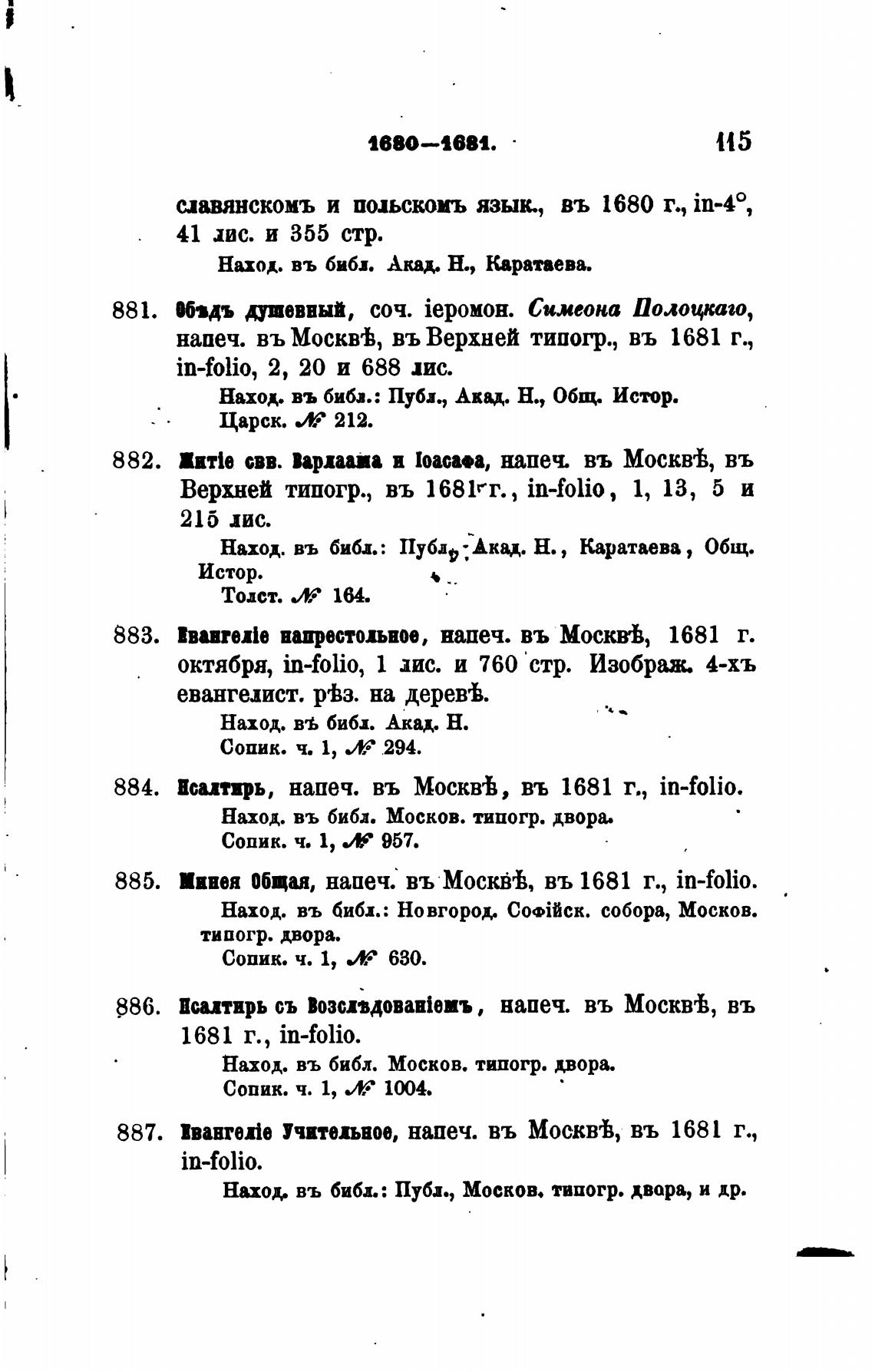 Верхней типогр., въ 1681ег., in-folio, 1, 13, 5 и