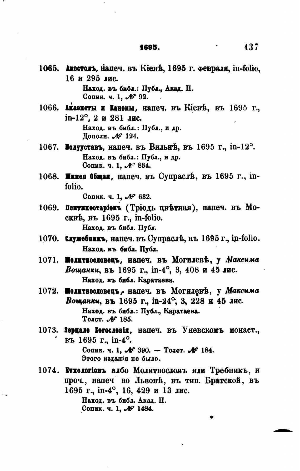 ешебввкъ, напеч. въ Супрас.й, въ 1695 г., ip-folio.