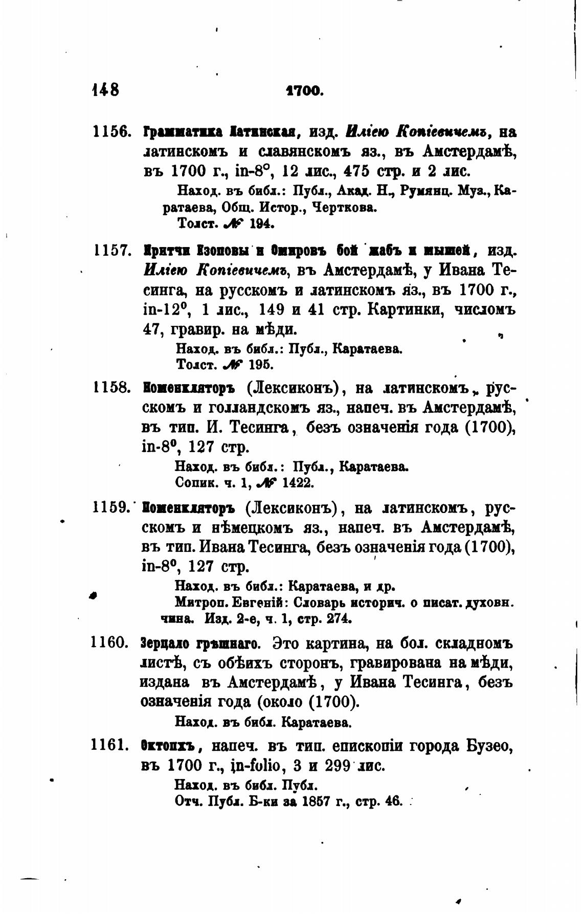 въ тип. Ивана Тесинга, безъ года (1700),