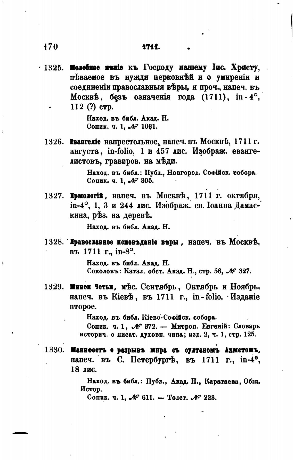 напеч. въ С. Петербурй, въ 1711 г., in-40,