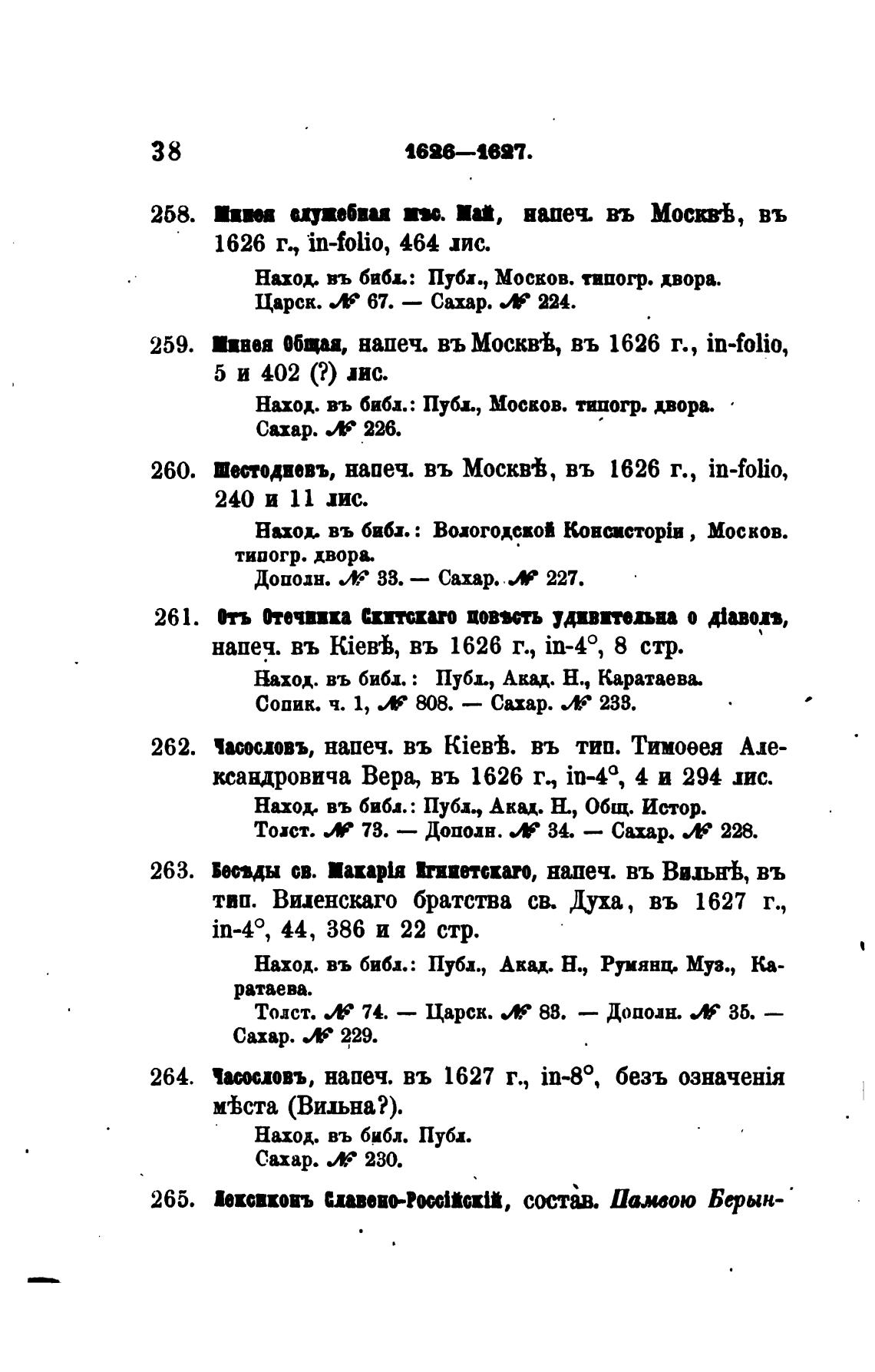 Шподпвъ, напеч. въ Москв%, въ 1626 г., in-folio,