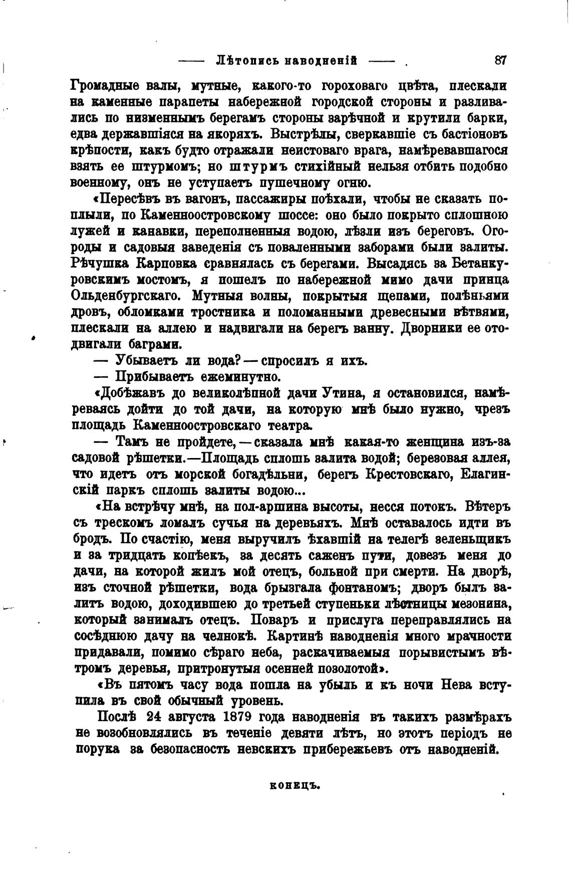 «Въ пятоиъ часу вода пошла на убыль и въ ночи Нева всту-