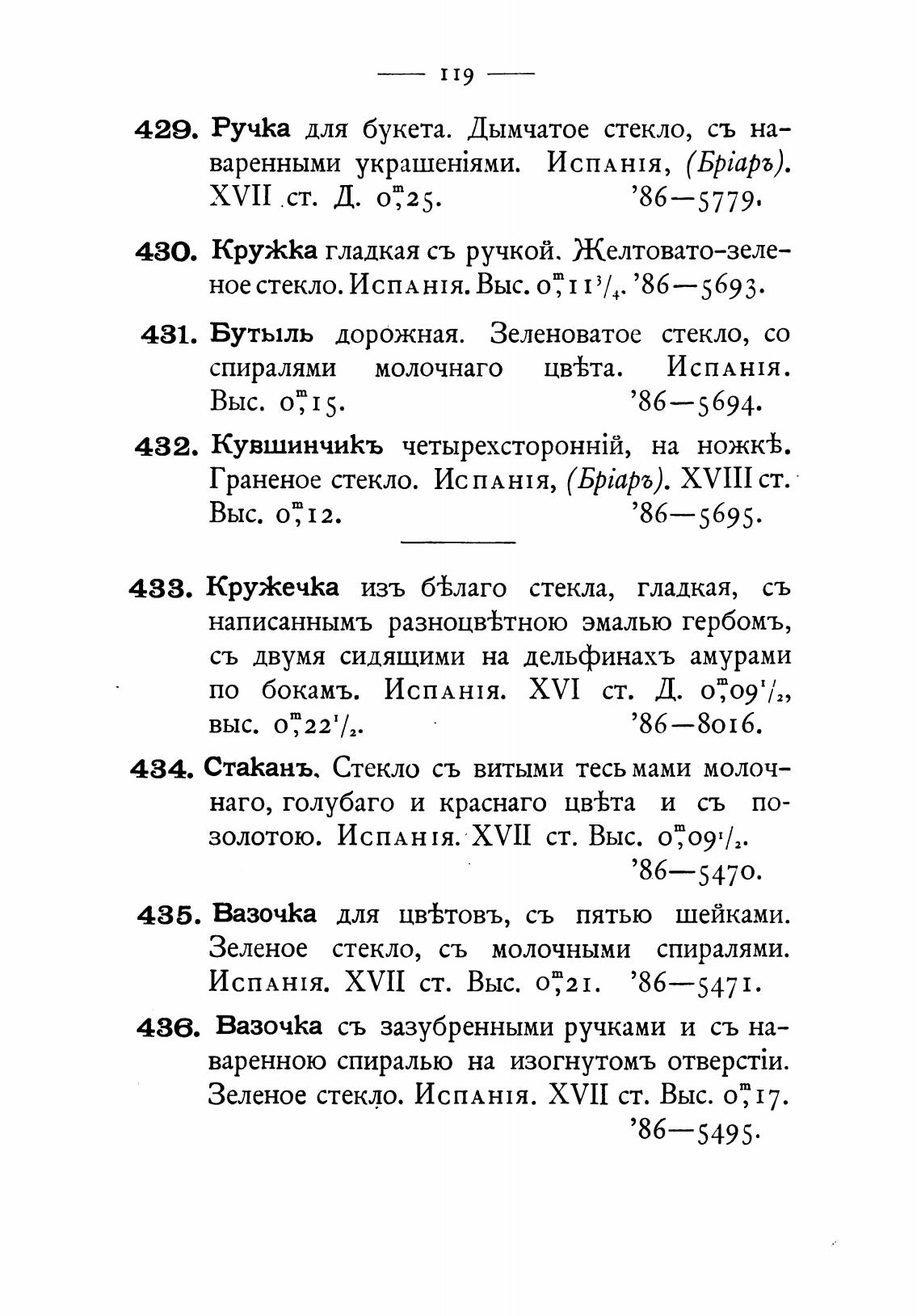 ное стекло. ИСПАНИ. Выс. о: 1 13/4.'86—5693.