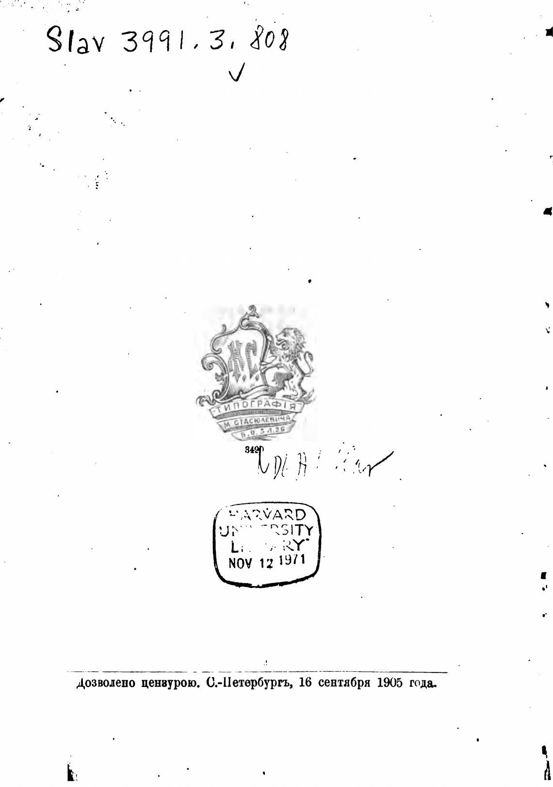 дозволено ценвурою. С.-Петербургъ, 16 сентября 1905 года.