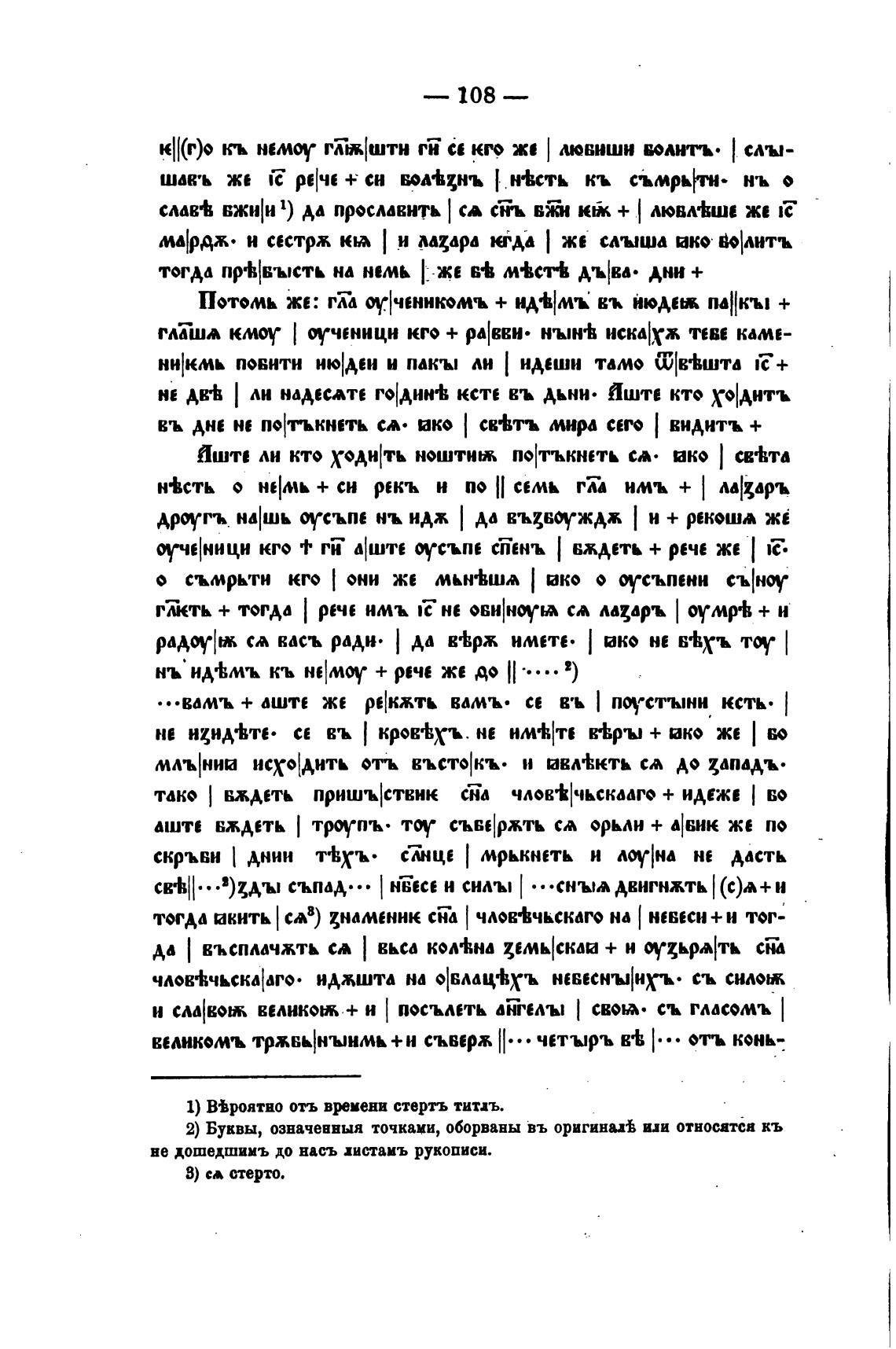 2) Буквы, означеввыя точками, оборваны въ оригина" иди относятся кь