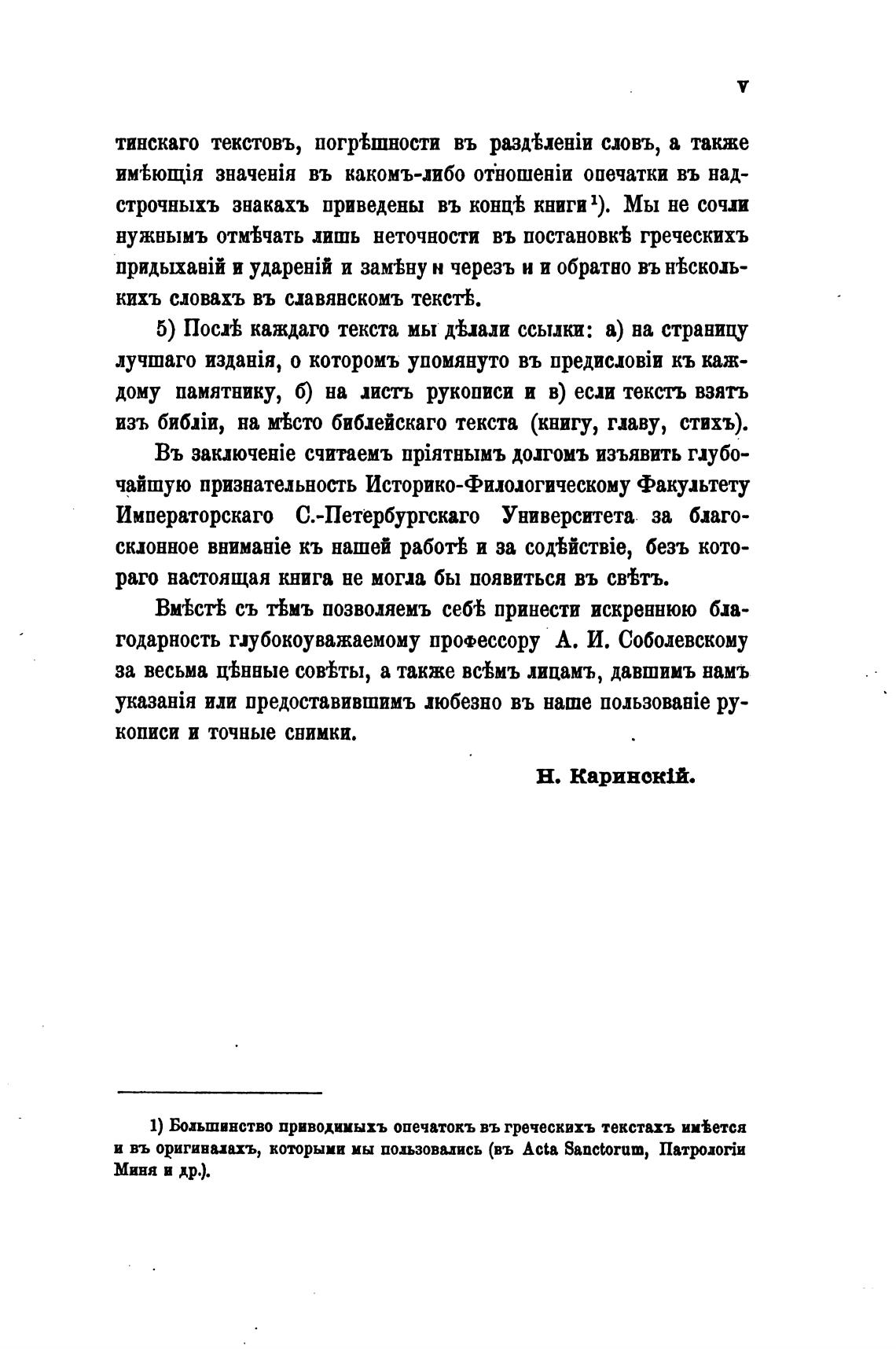 годарность глубокоуважаемому профессору А. И. Соболевскому