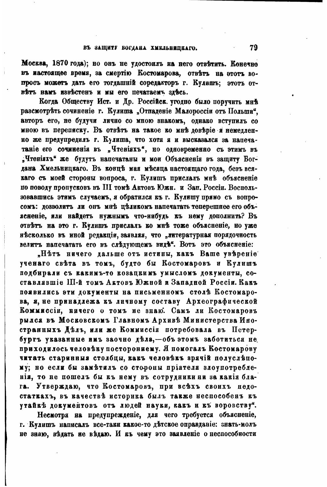 отв'Ьтъ на это г. Кулишъ прислалъ во мнгЬ тоже 06bacHeHie, но уже