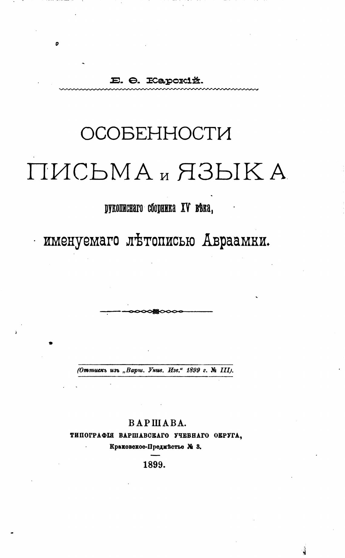 (Оттисхъ изъ „Варш. YHtu. Изе.“ 1899 г. III).