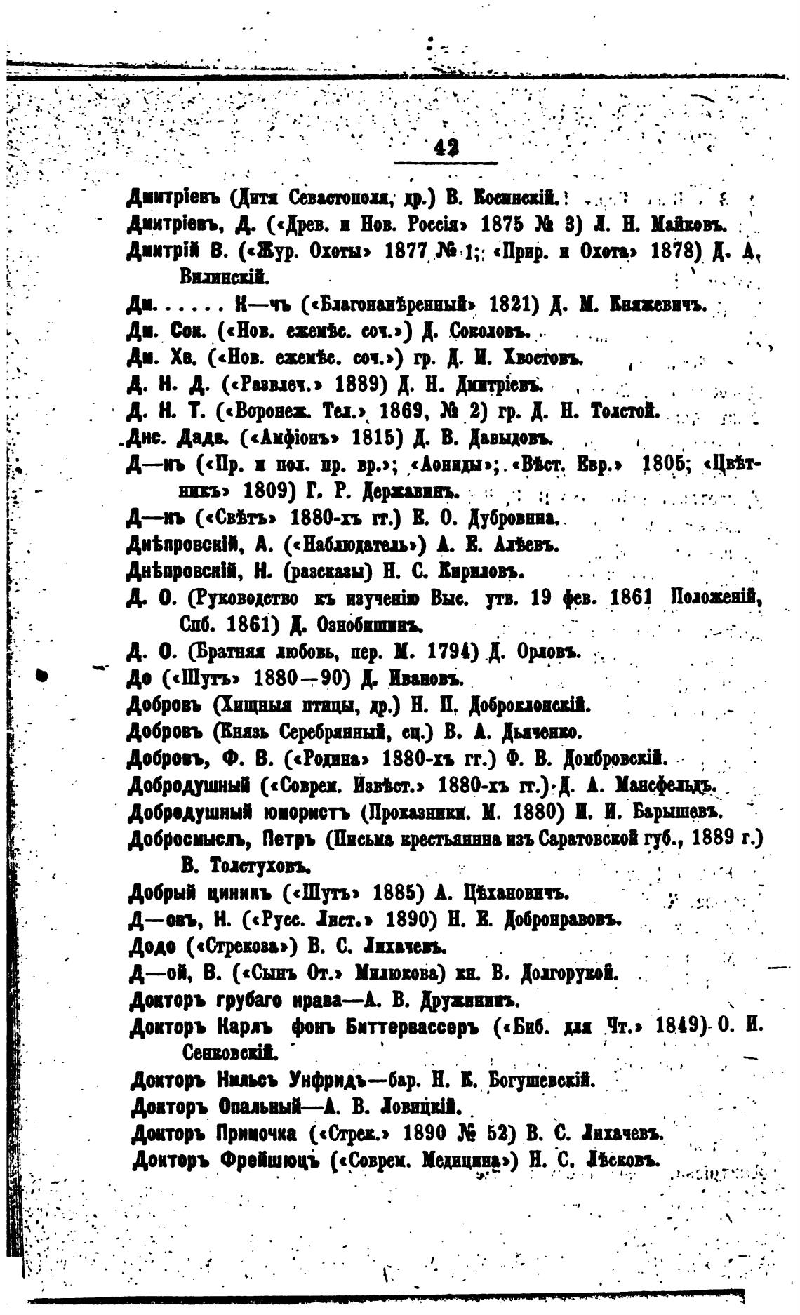 Д—овъ, Н. («Русс. Два.» 1890) Н. В. Добронраивъ.