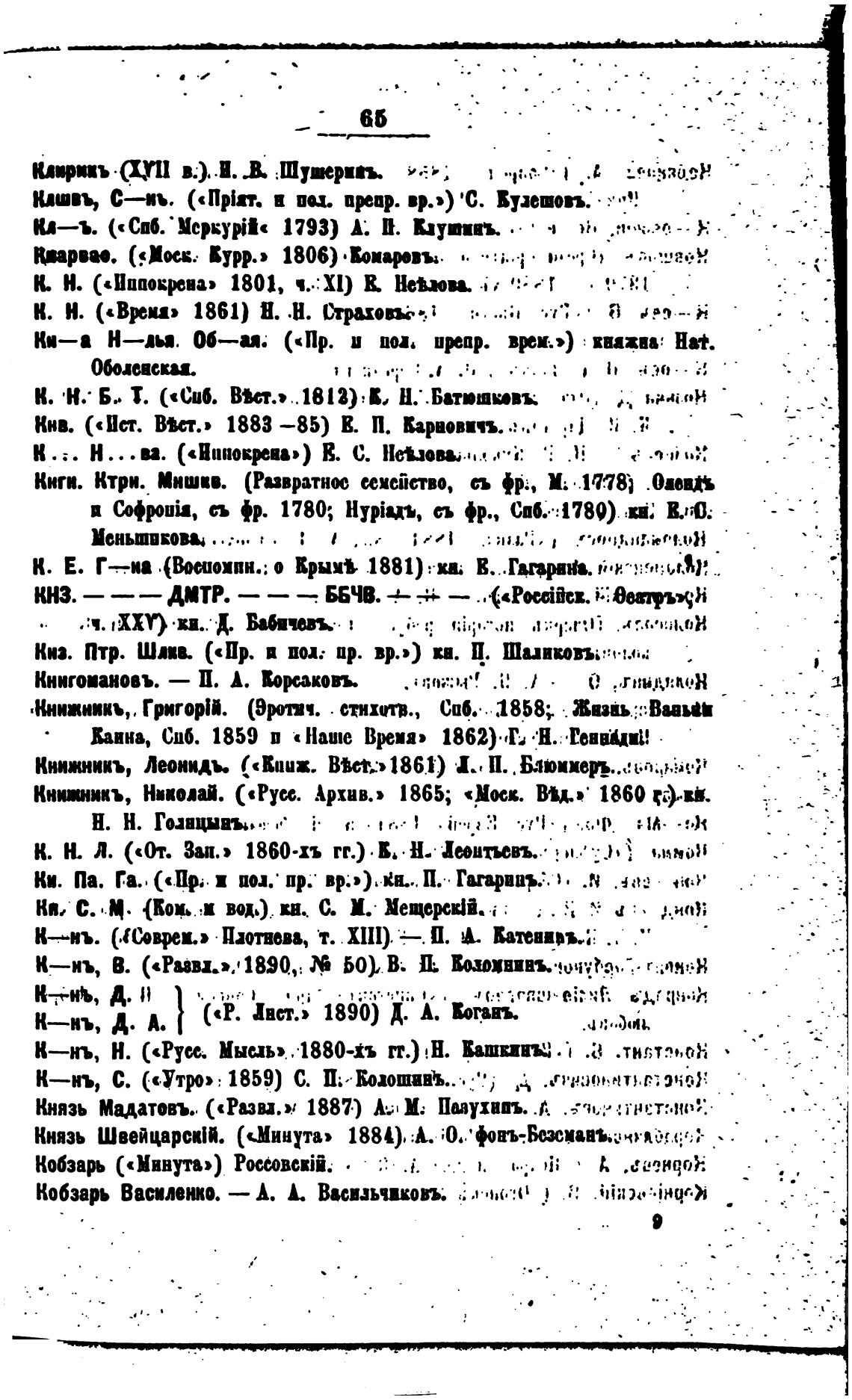 Книвнпъ, Нивопй. («Русс. Архив.» 1865; «Ник. ВВ..• 1860
