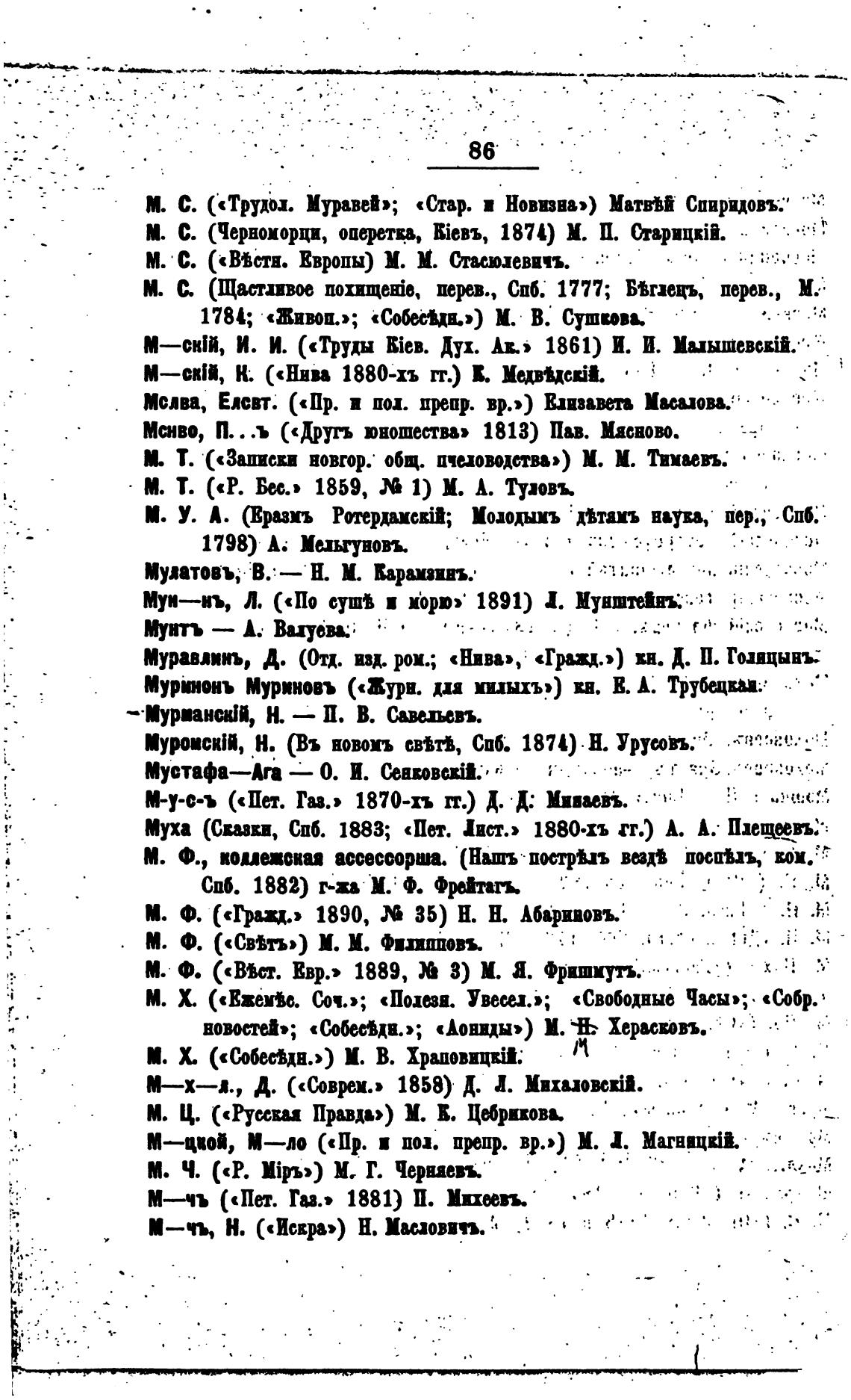 М. О. («вт. Евр.» 1889, 8) М. а. Фритмуп.