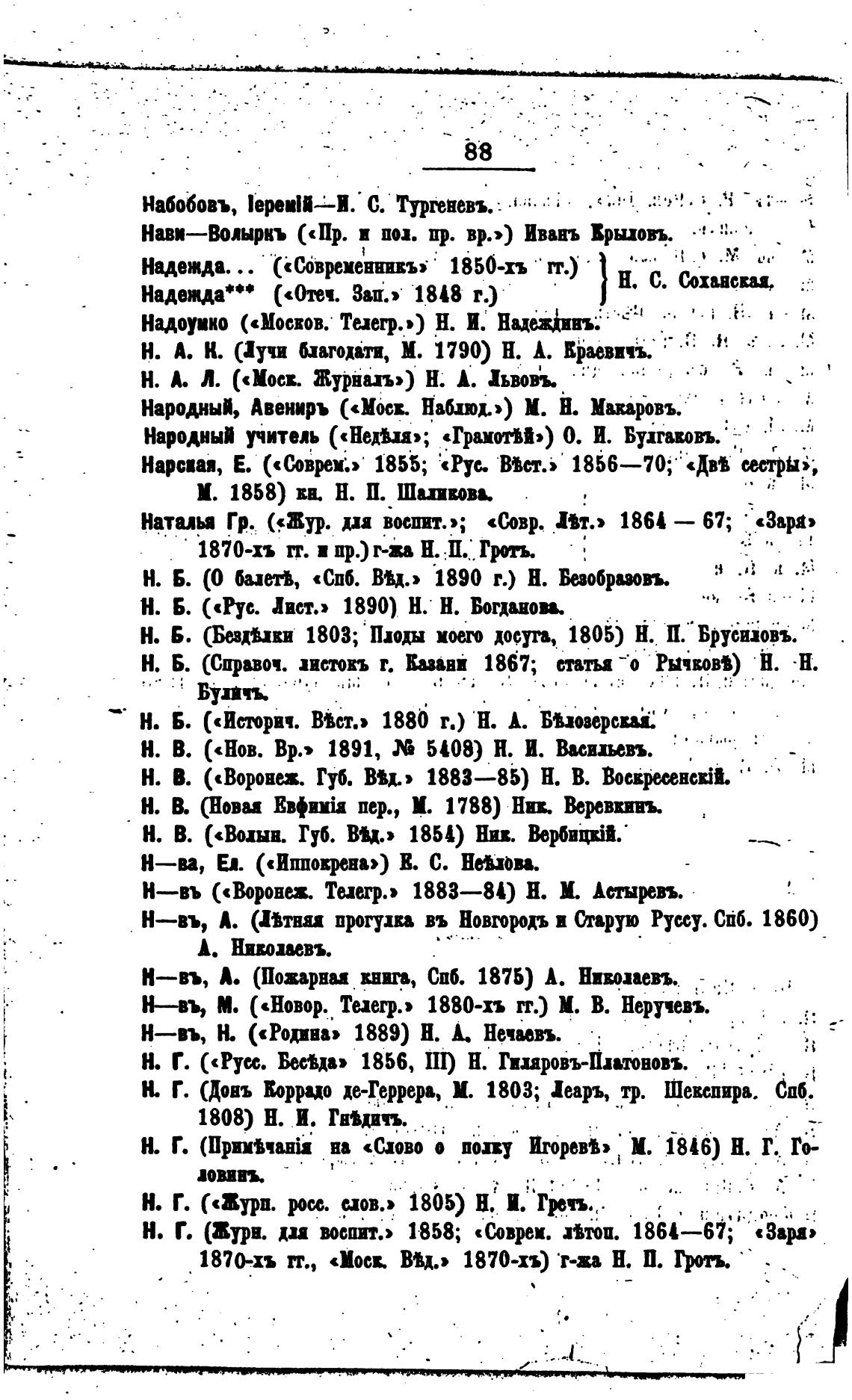 Н. В. («нов. ВР.. 1891, 5408) Н. И. виное».