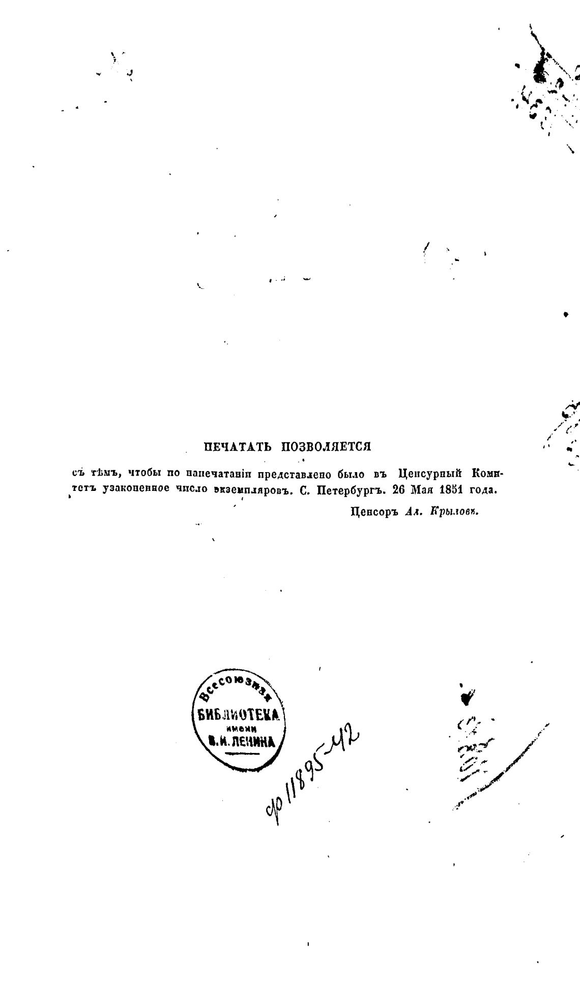 св тьмъ, чтобы по напечатавТ представлено было въ Ценсурпый Комв-