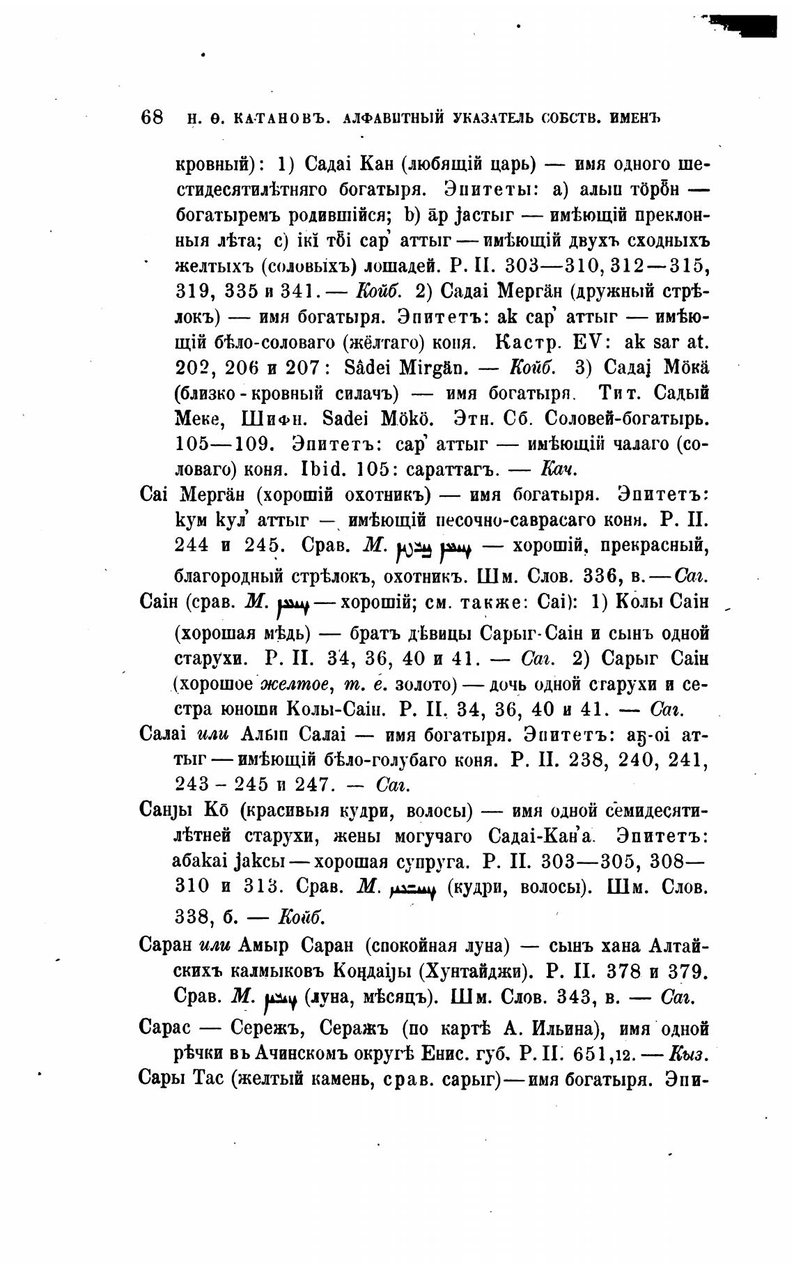 68 Н. е. КАТАНОВЪ. АЛФАВИТНЫЙ УКАЗАТЕЛЬ СОБСТВ. ИМЕНЬ
