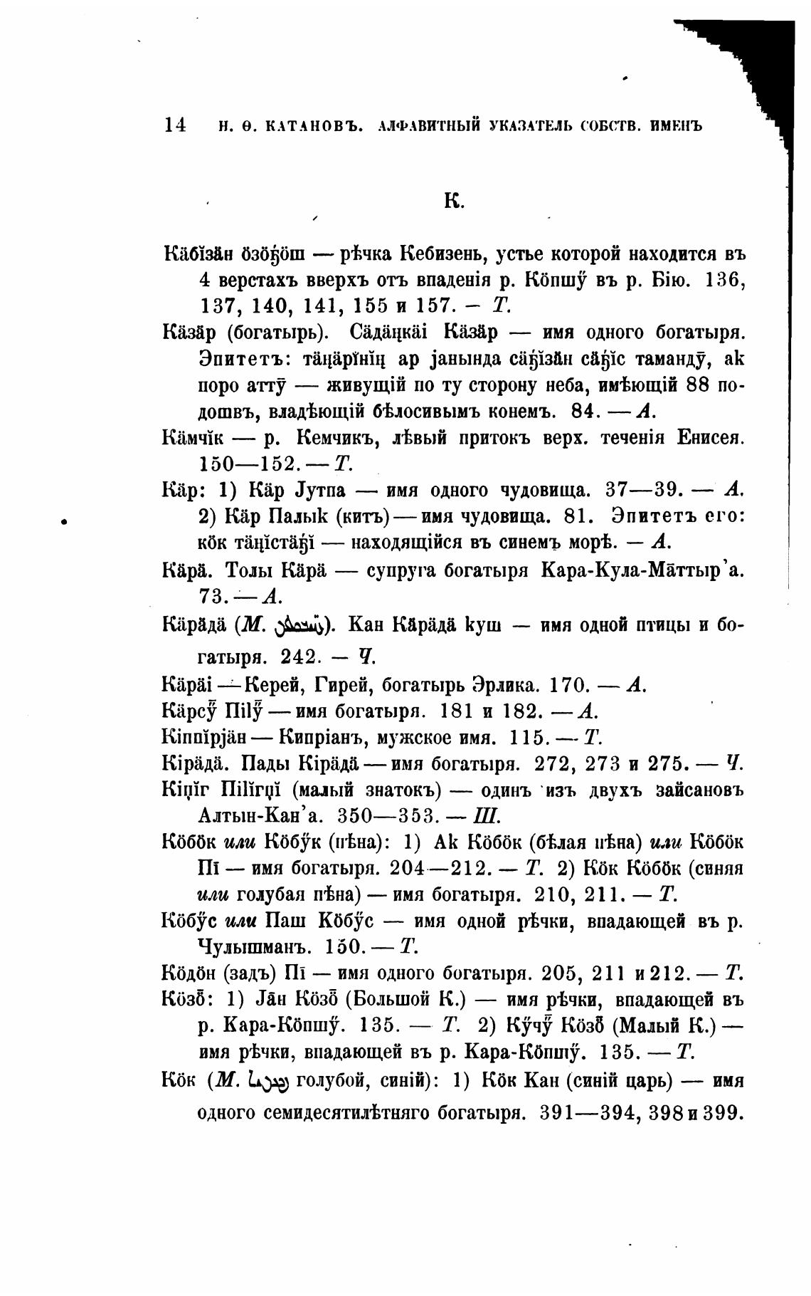 2) кар ПалыК (кить)—имя чудовища. 81. Эпитетъ его: