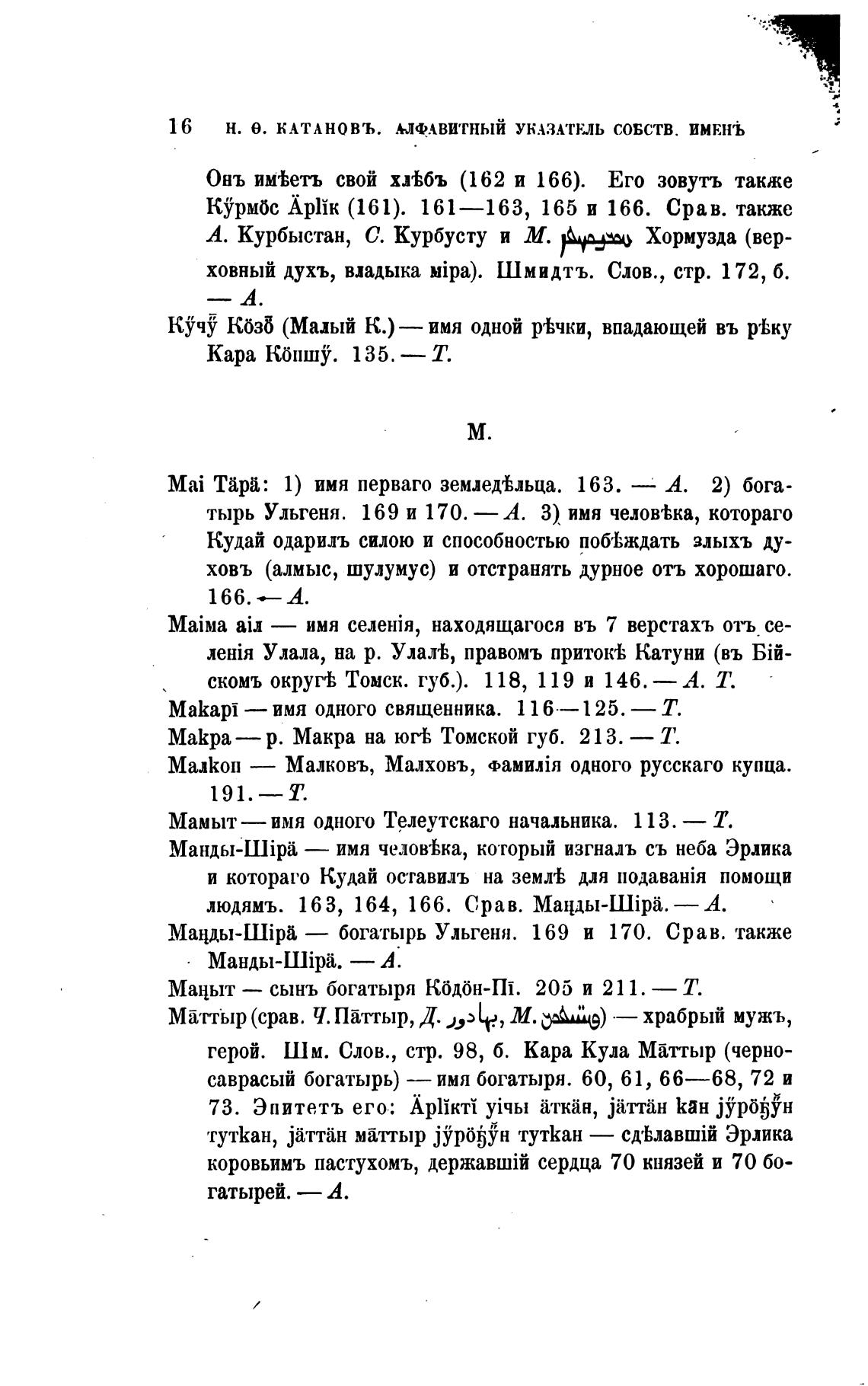 Mai тара: 1) имя перваго земледеЬльца. 163. — А. 2) бога-