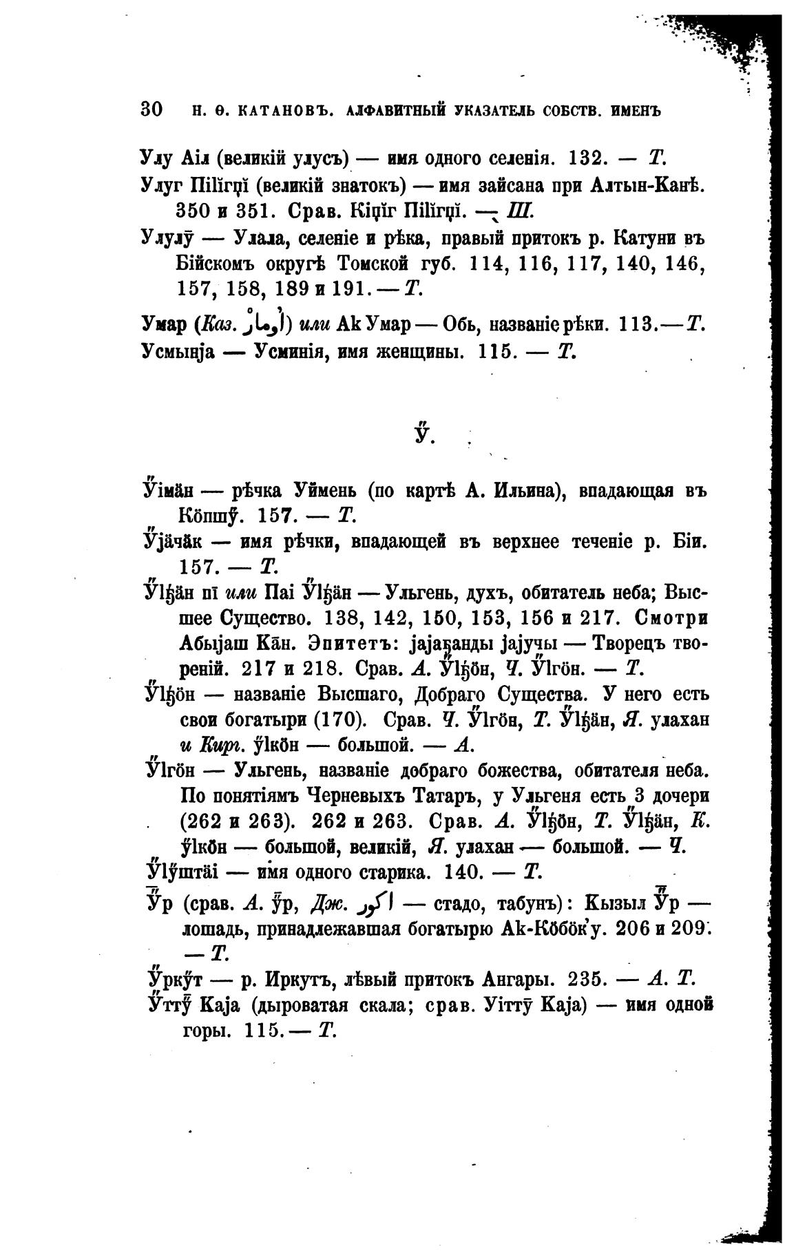 30 Н. е. КАТАНОВЪ. АЛФАВИТНЫЙ УКАЗАТЕЛЬ СОБСТВ. ИМЕНЬ