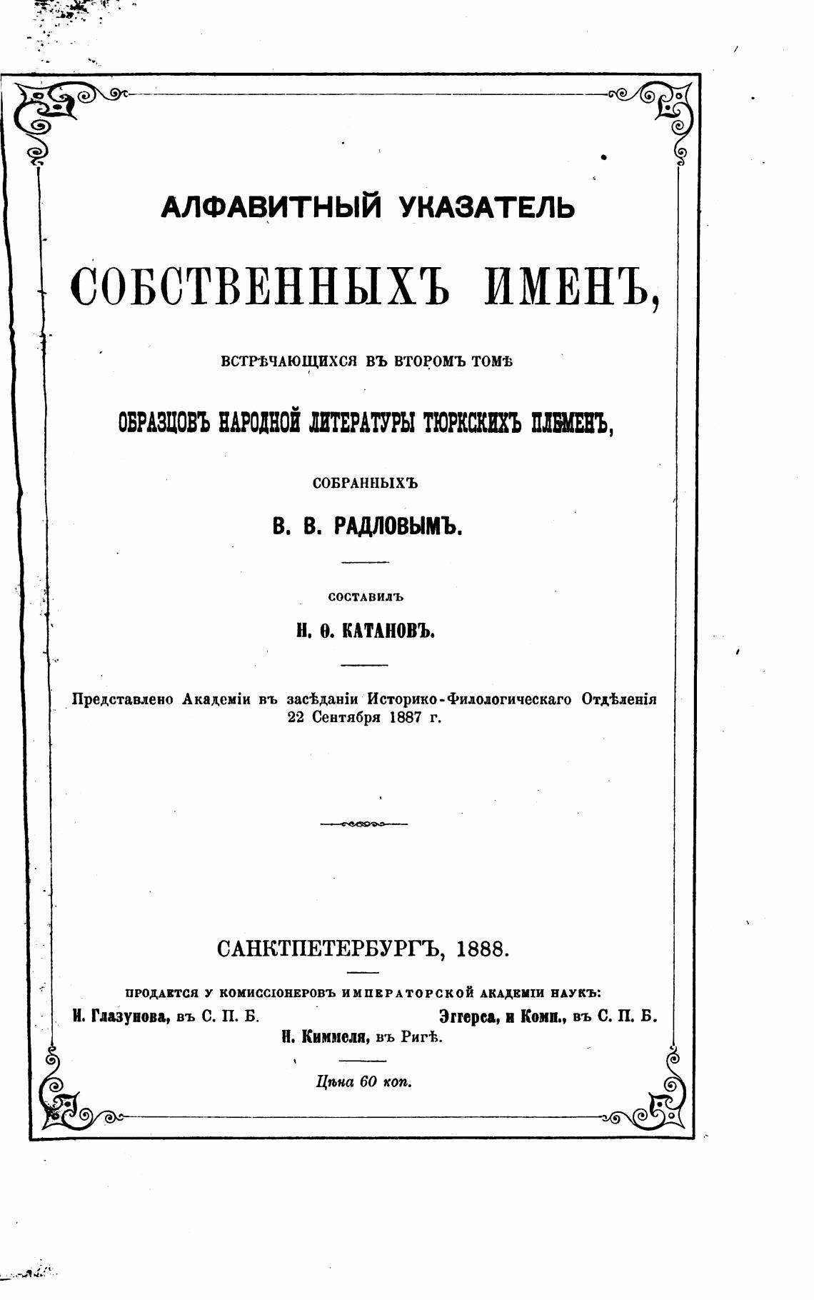 САНКТПЕТЕРБУРГЪ, 1888.