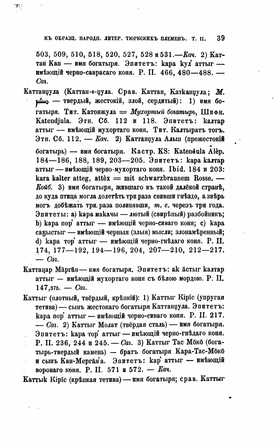 Каттацар Марган— имя богатыря. Эпитетъ: ак астыг Калтар