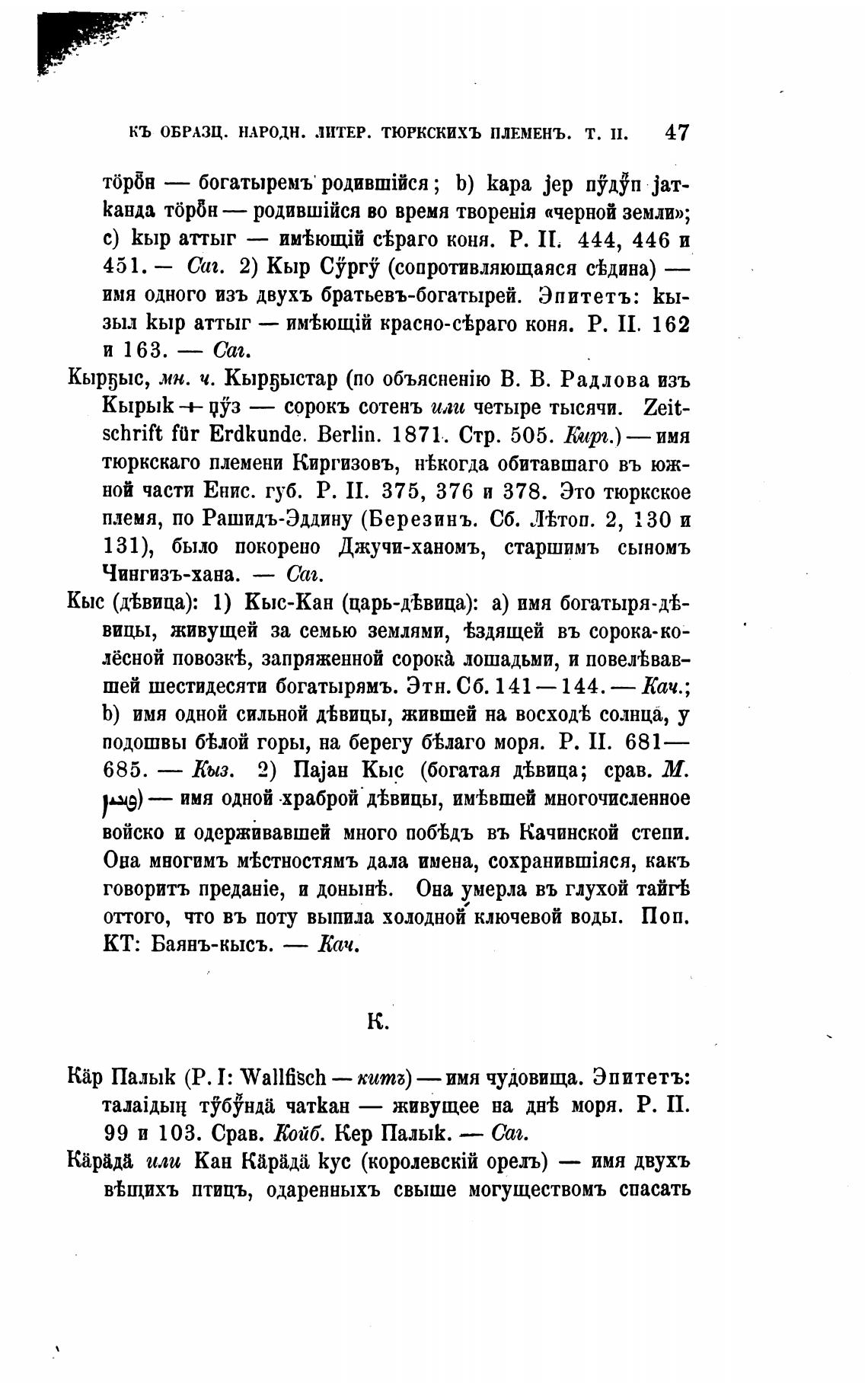 Кырјыс, мн. ч. Кыр5ыстар (по В. В. Радлова изъ