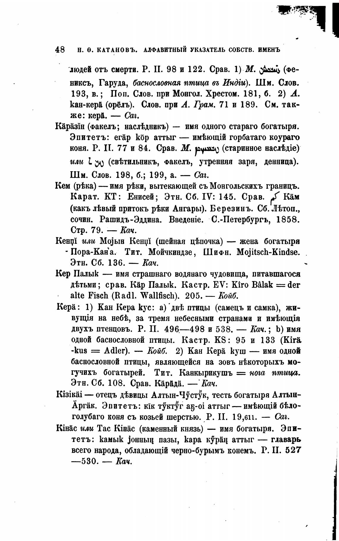 48 Н. е. КАТАНОВЪ. АЛФАВИТНЫЙ УКАЗАТЕЛЬ СОБСТВ. ИМЕНЬ