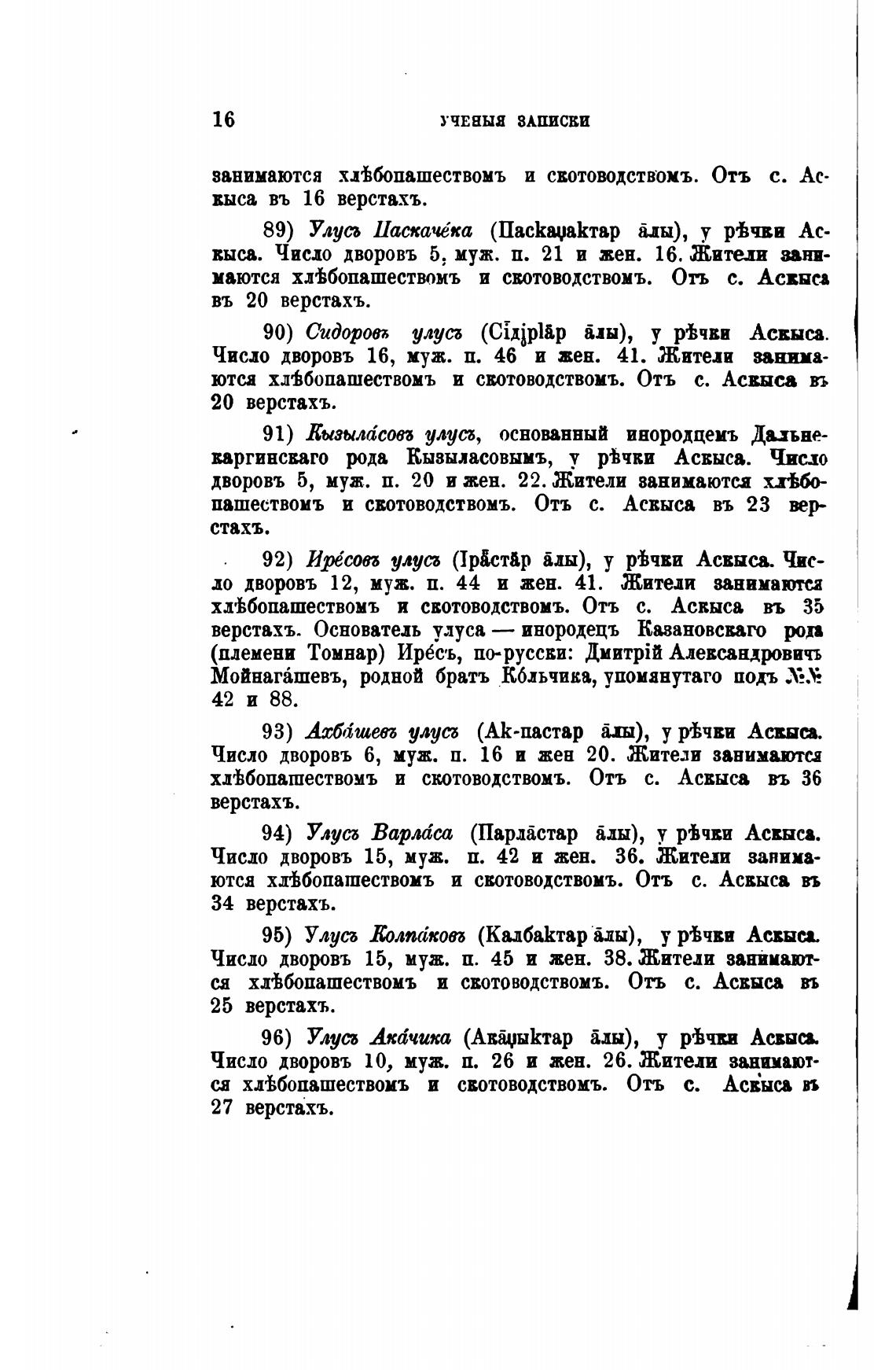92) Ирёсовб улуса (Јр5стАр длы), у Асвыса. Чис-