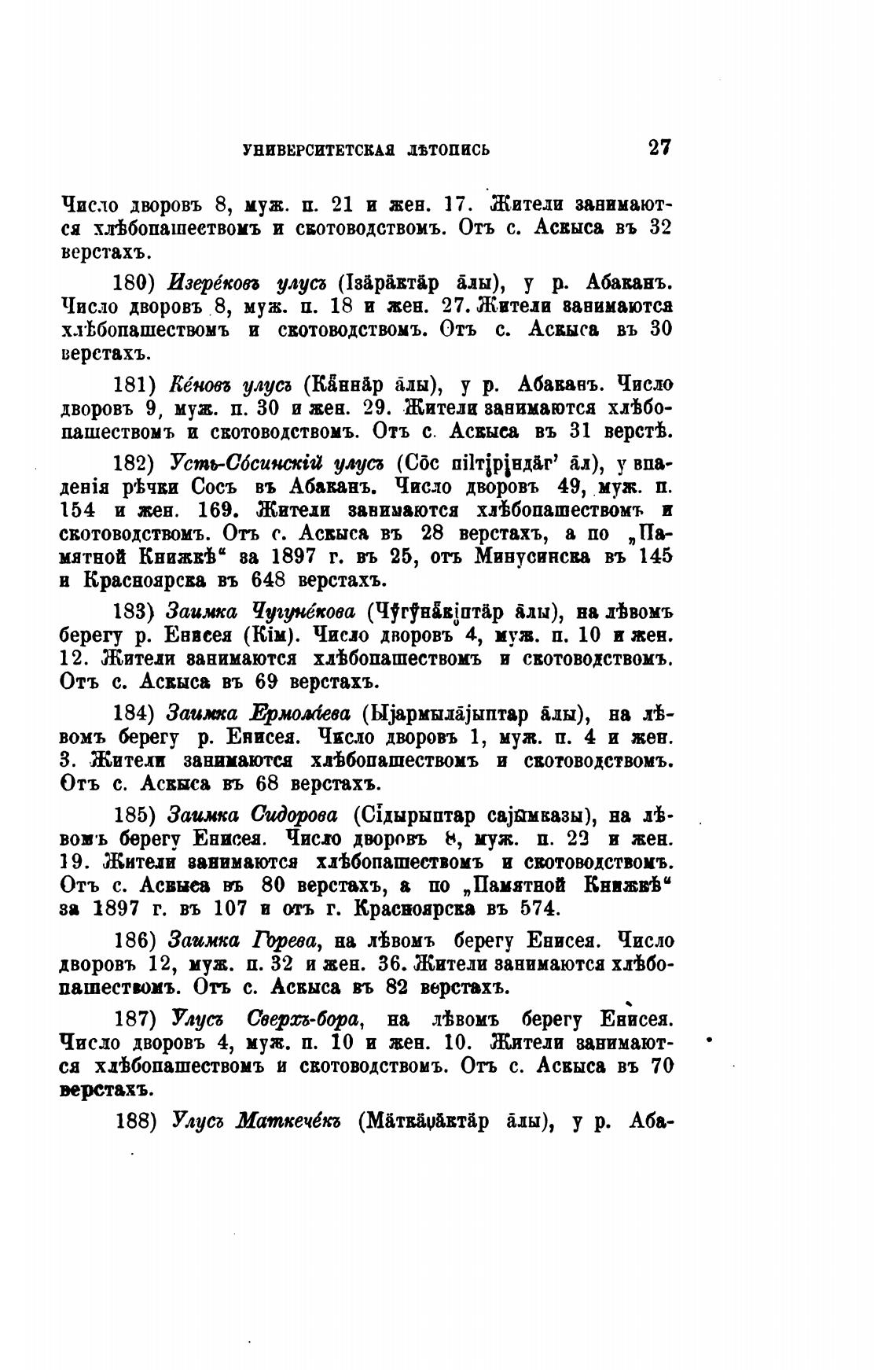 мятной Книжв±" ва 1897 г. въ 25, отъ Минусинсва въ 145