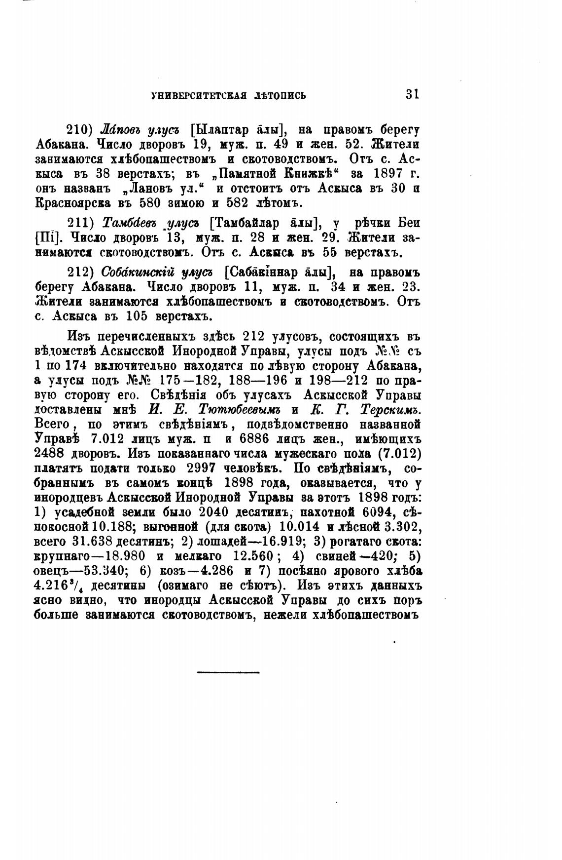 Изъ перечисленаыхъ здђсь 212 улусовъ, состоящихъ въ