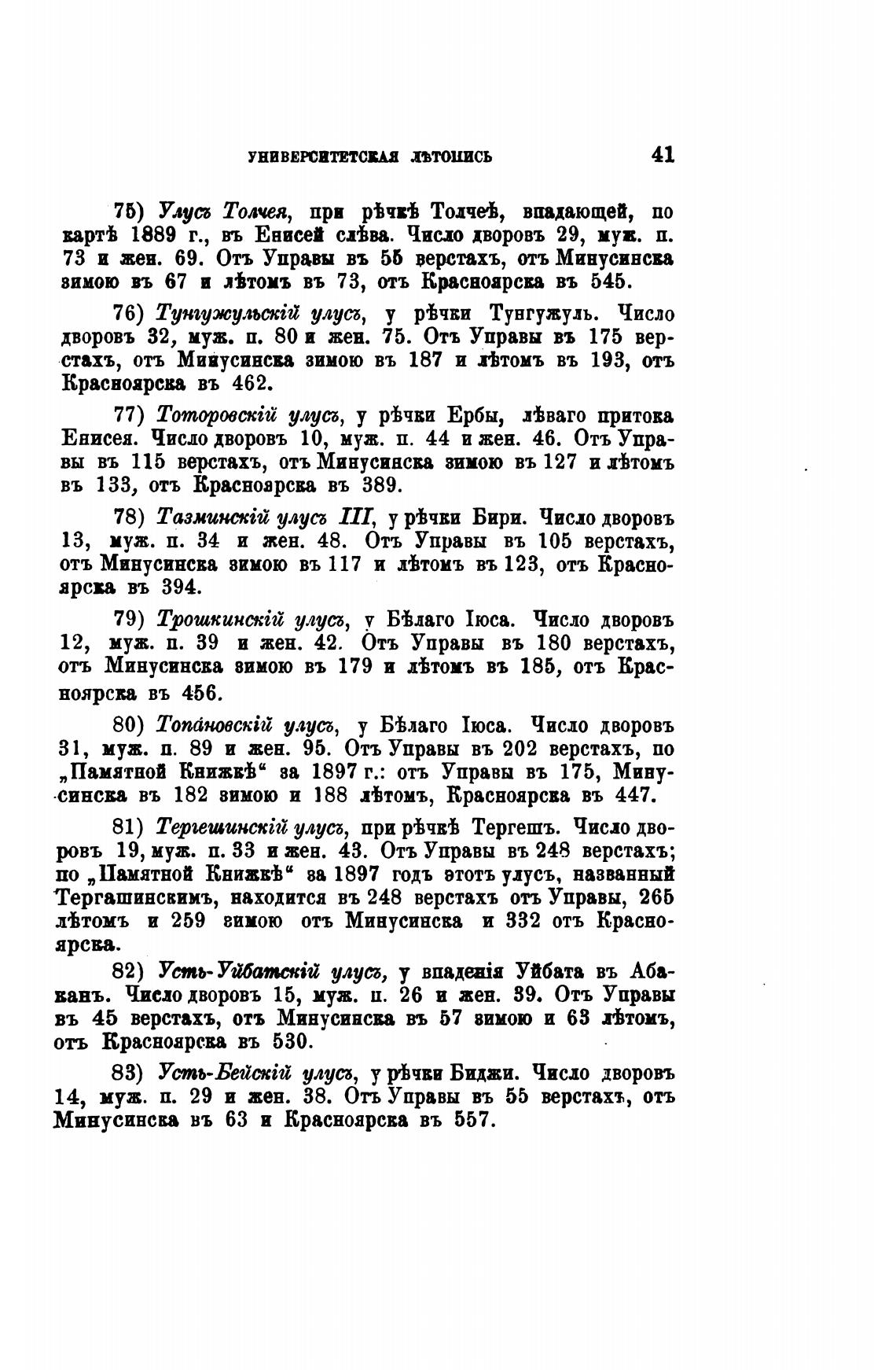 83) Усть-Бейскйђ улусь, у ртчви Биджи. Число дворовъ