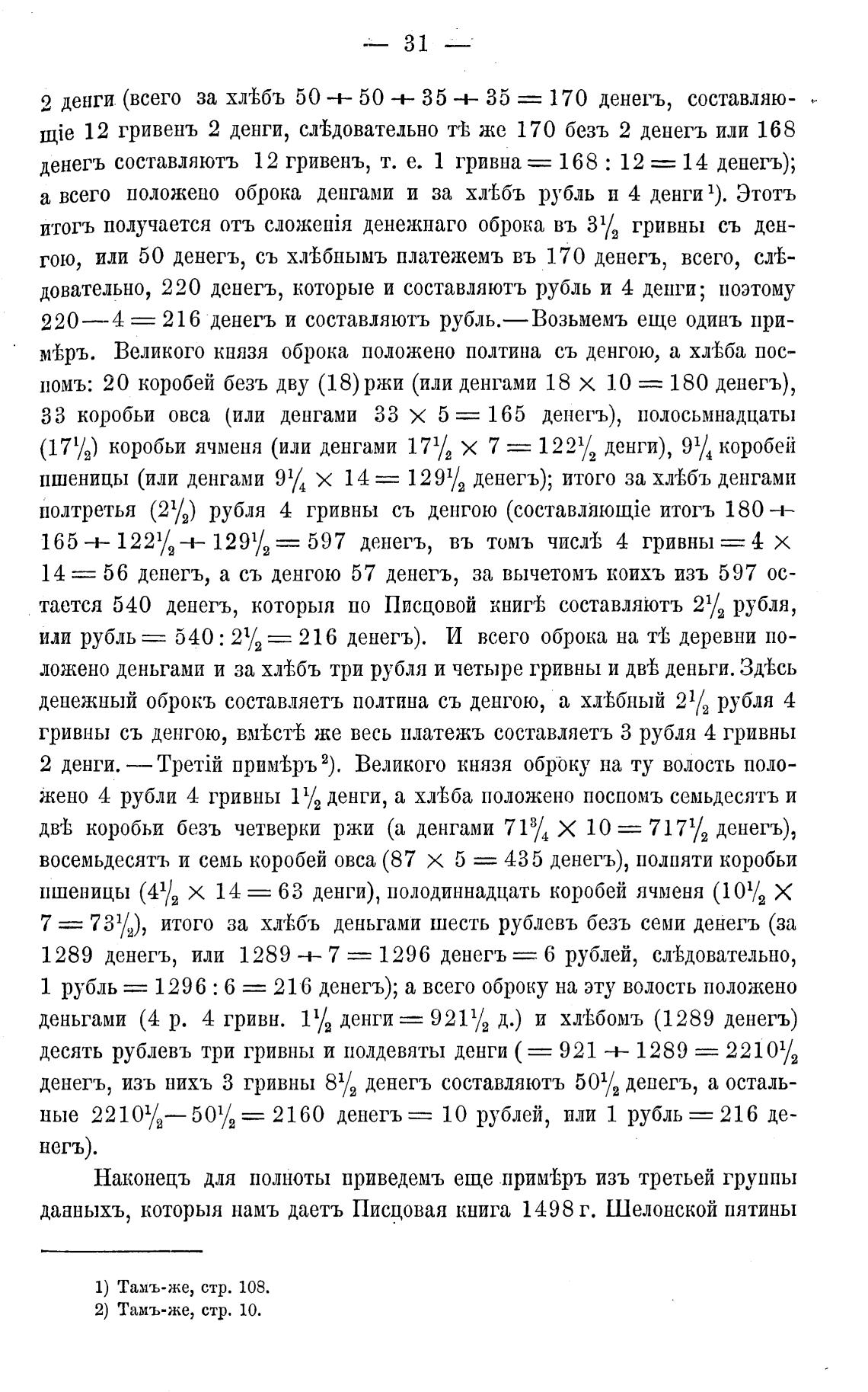 или рубль== 540 : 21/2 — 216 денегъ). И всего оброка на тф деревни по-