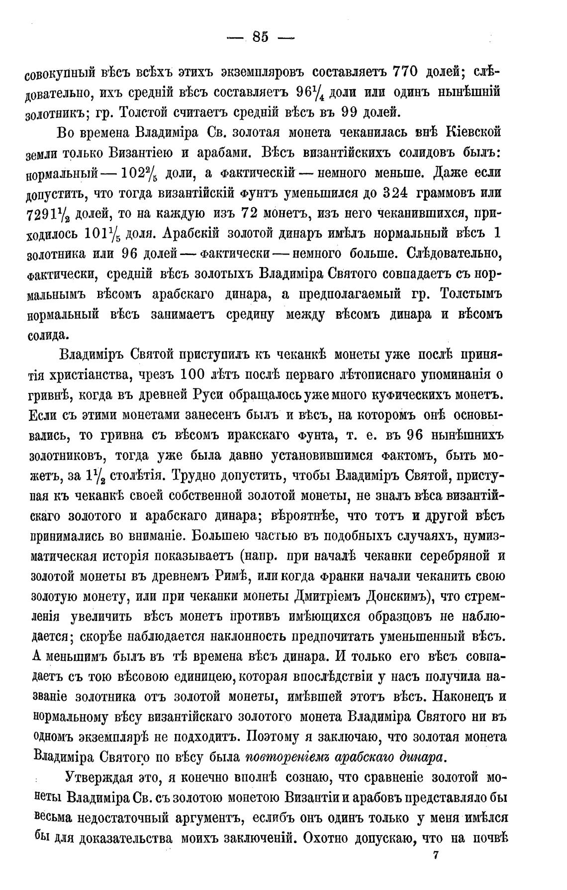мальнымъ вТсомъ арабскаго динара, а предполагаемый гр. Толстымъ