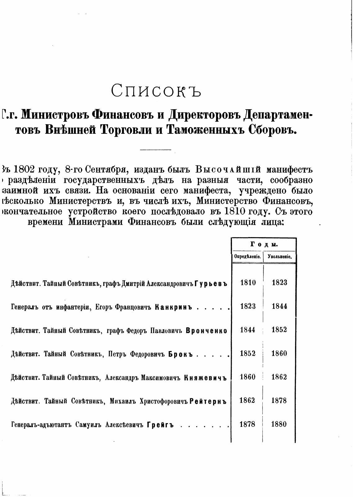 времени Министрами Финансовъ быди лица: