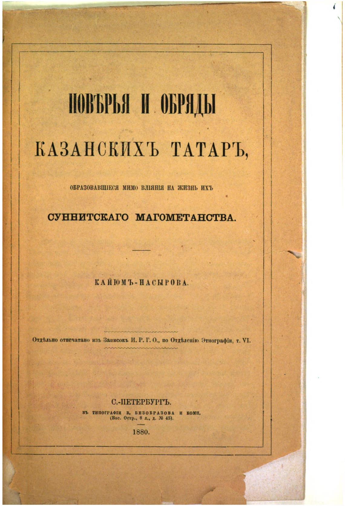 Отд4иьно отпечатано изъ Заиисокъ И. Р. Г. О., по т. VI.