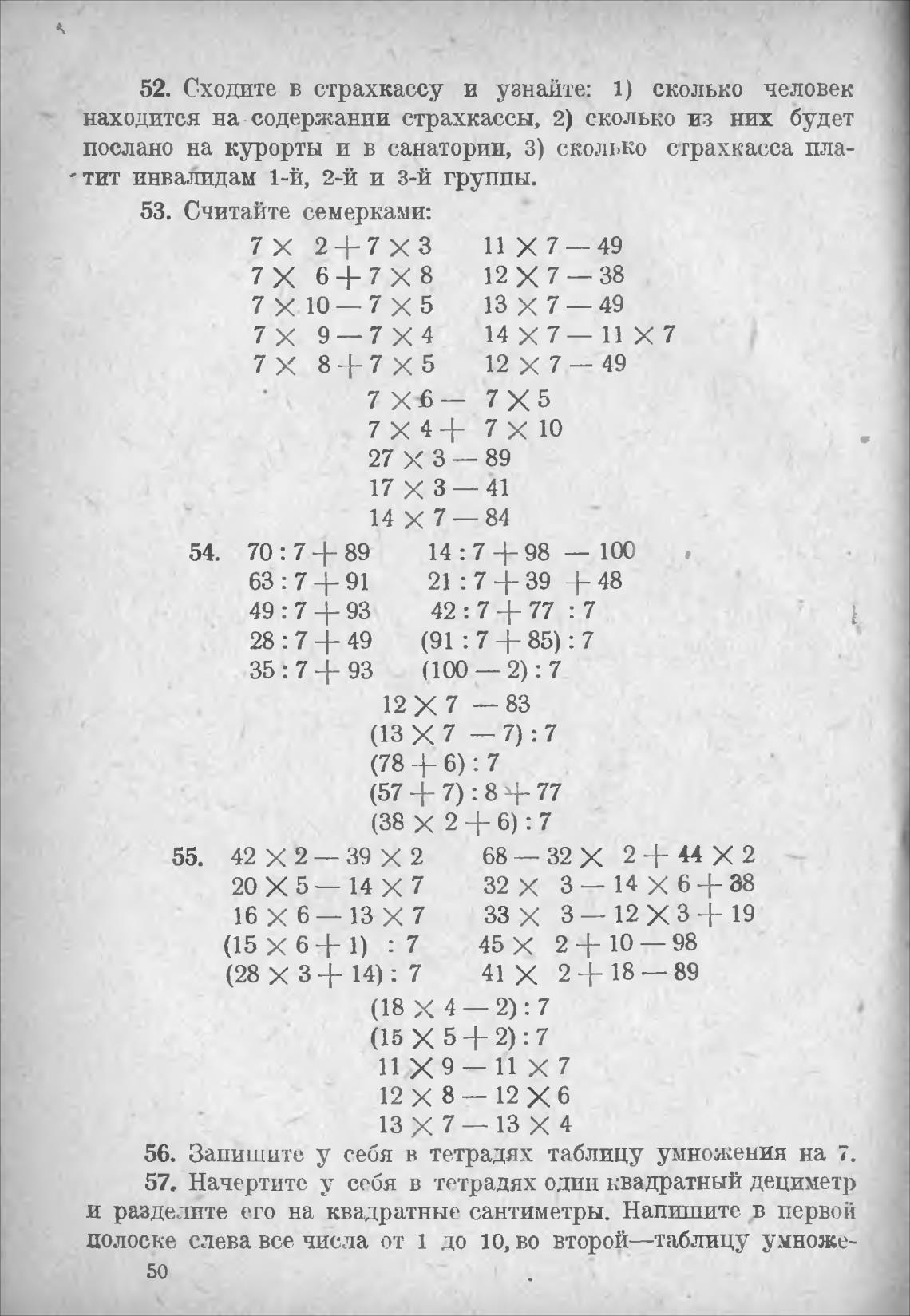 56. Запишите у себя в тетрадях таблицу умножения на 7.