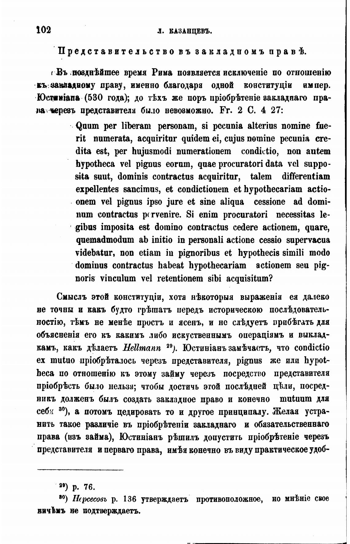 ех mutuo щЈобр'Ьта.шсь черезъ представителя, pignus же или hypot-