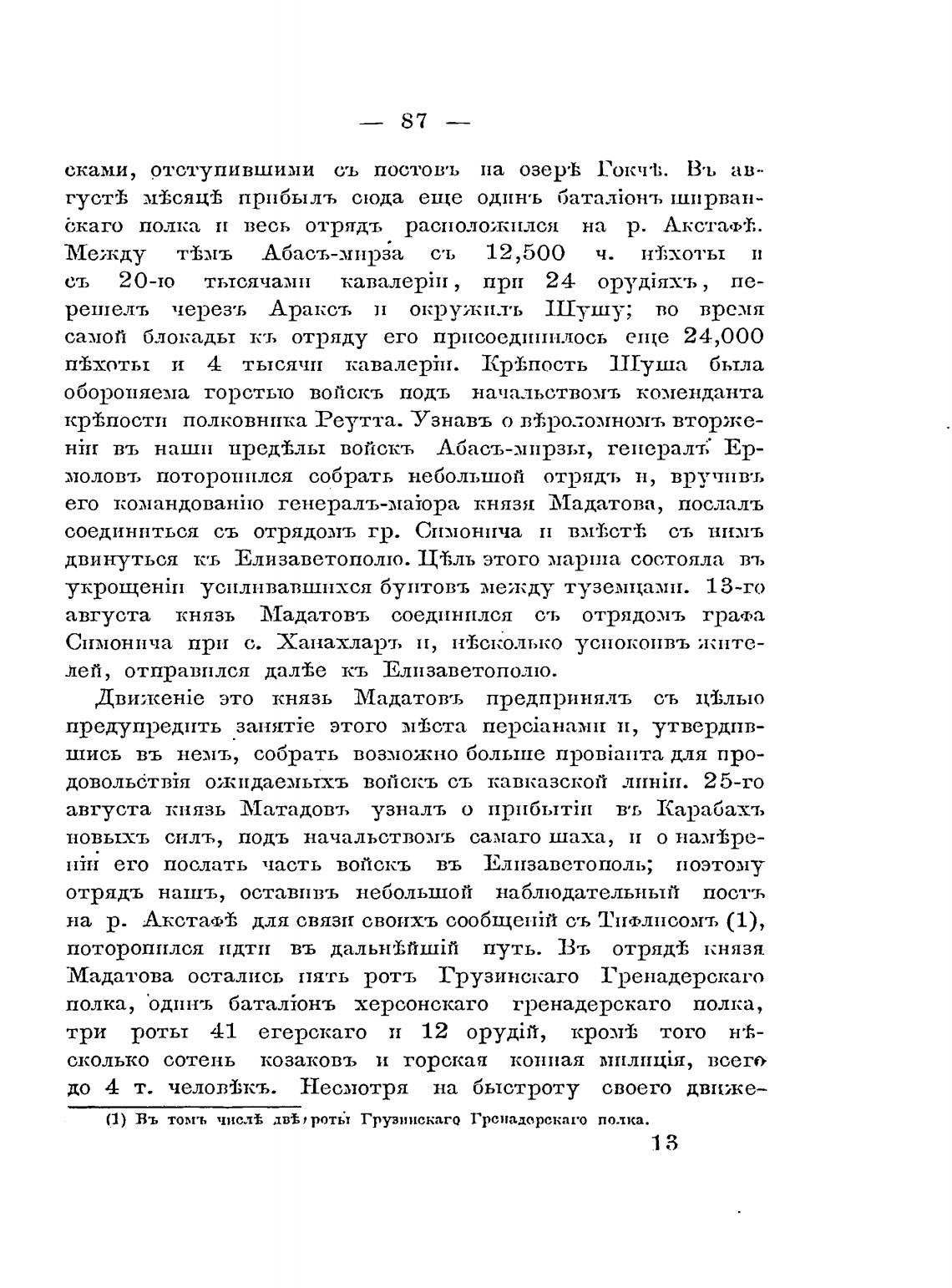 Мадатова остались ттять ротъ Грузинскаго Гренадерскато