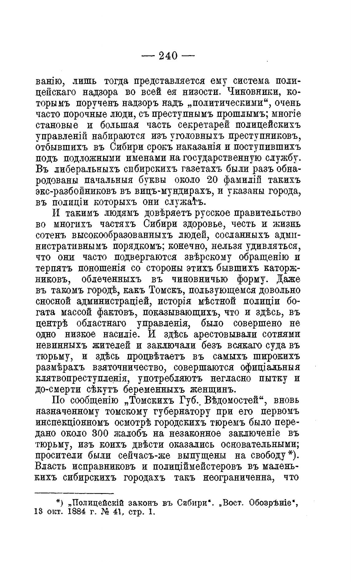 законъ въ Сибири“. „Вост. Обозръте“,