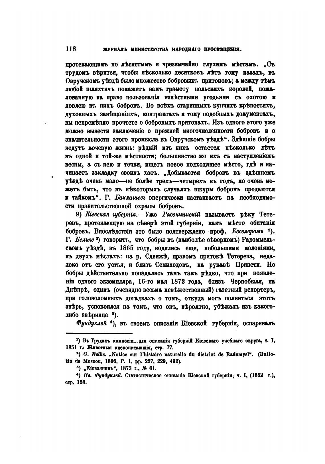 Г. Бельке 3) говорить, что бобры въ (наибол±е с%верномъ) Радомысхь-