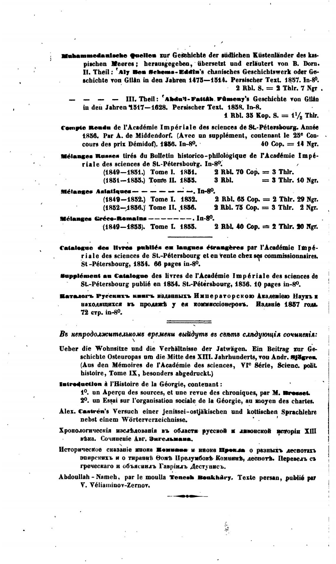 SL-P6tersbourg publi6 еп 1854. St.-P6tdrsbourg, 1856. pages in—80.
