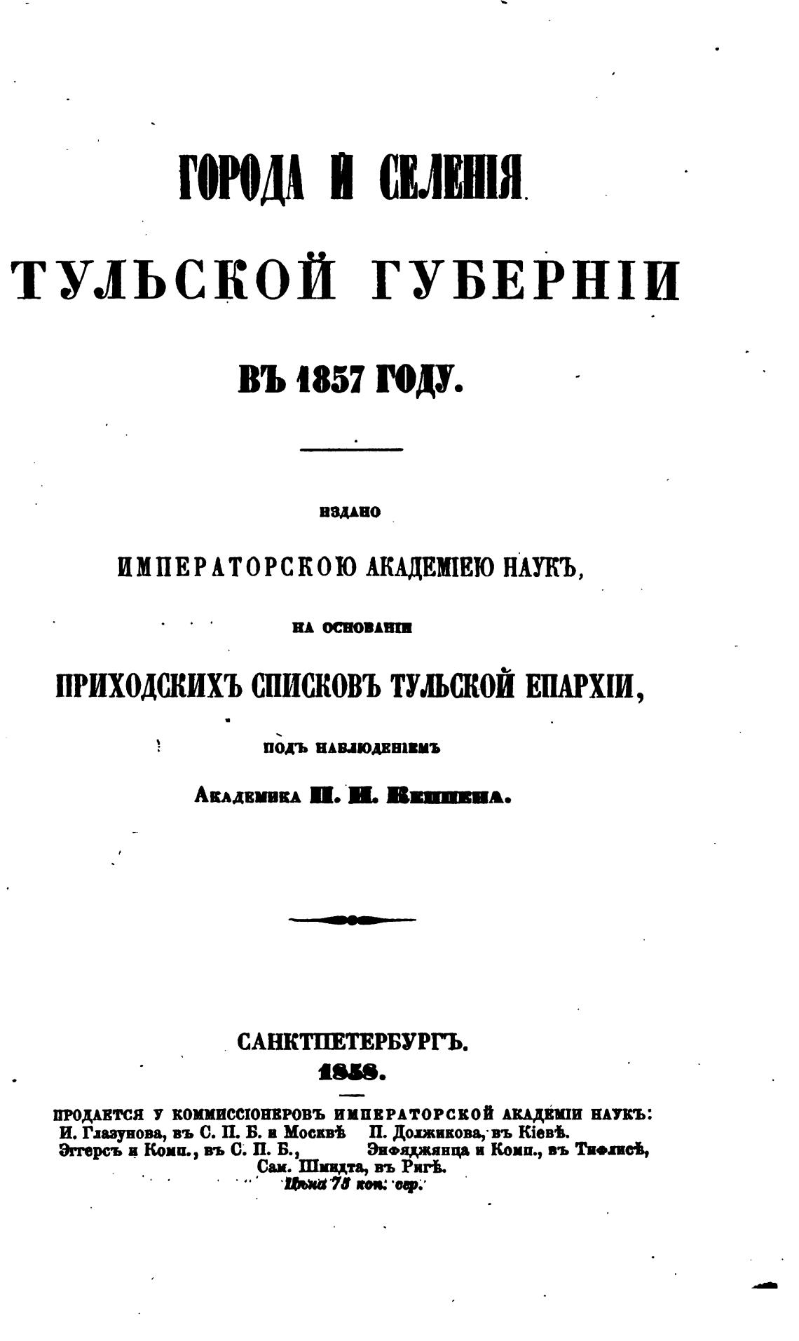 ПРИХОДСКИХЪ СПИСКОВЪ ТУЛЬСКОЙ ЕПАРХШ,
