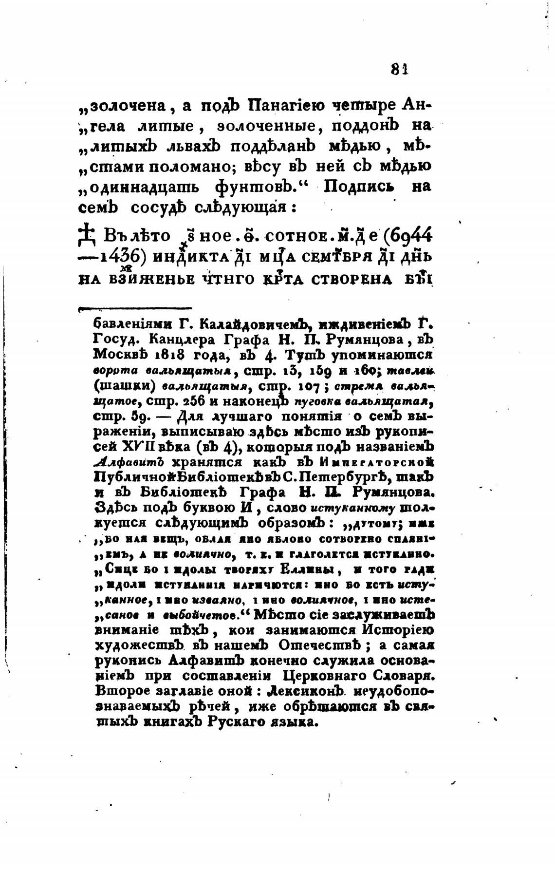 и въ Bu6.•iomekb Графа Н. И. Румянцова.