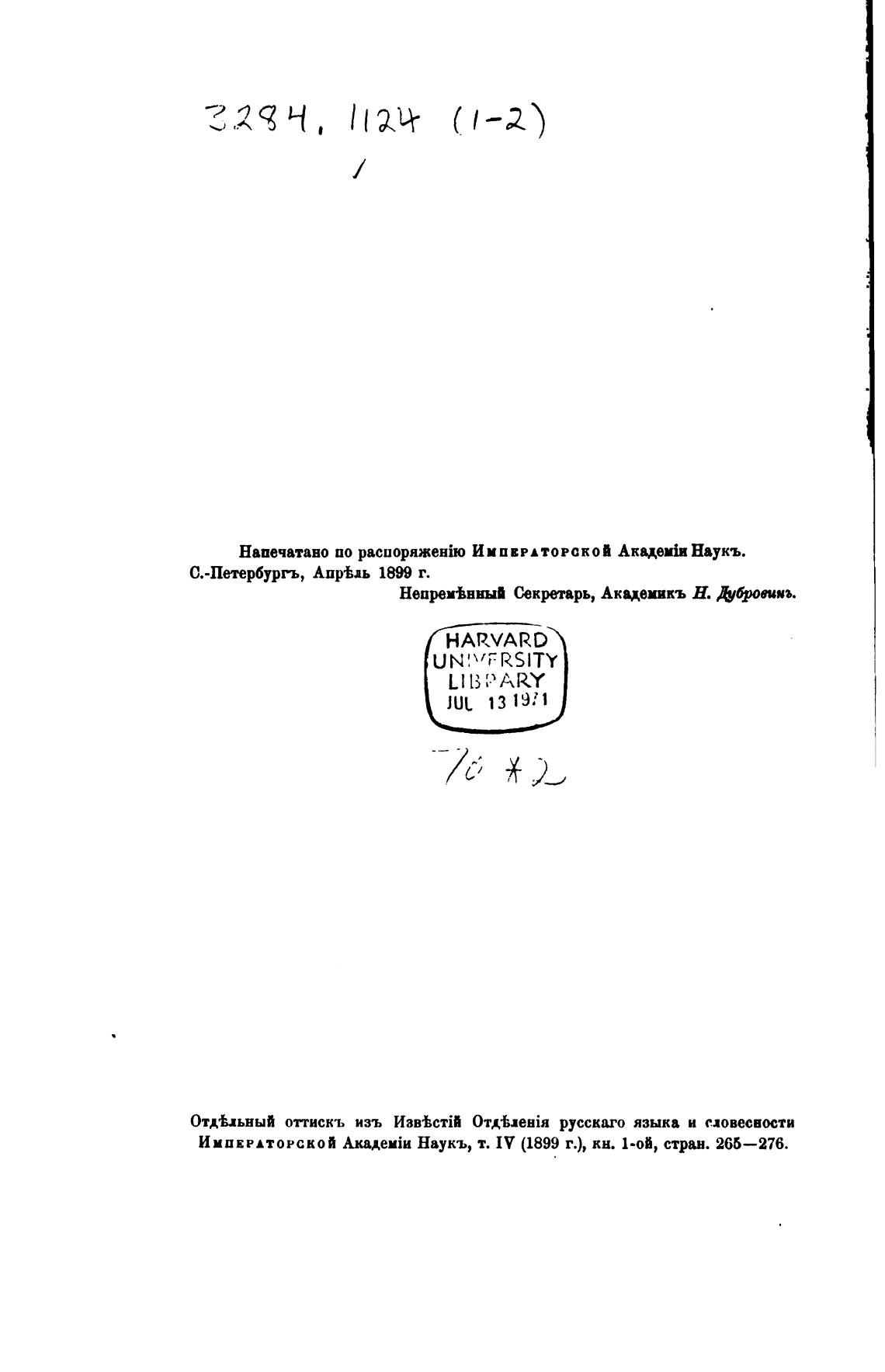 ИМПЕРАТОРСКОЙ Наукъ, т. IV (1899 г.), кн. 1-0И, стран. 266—276.