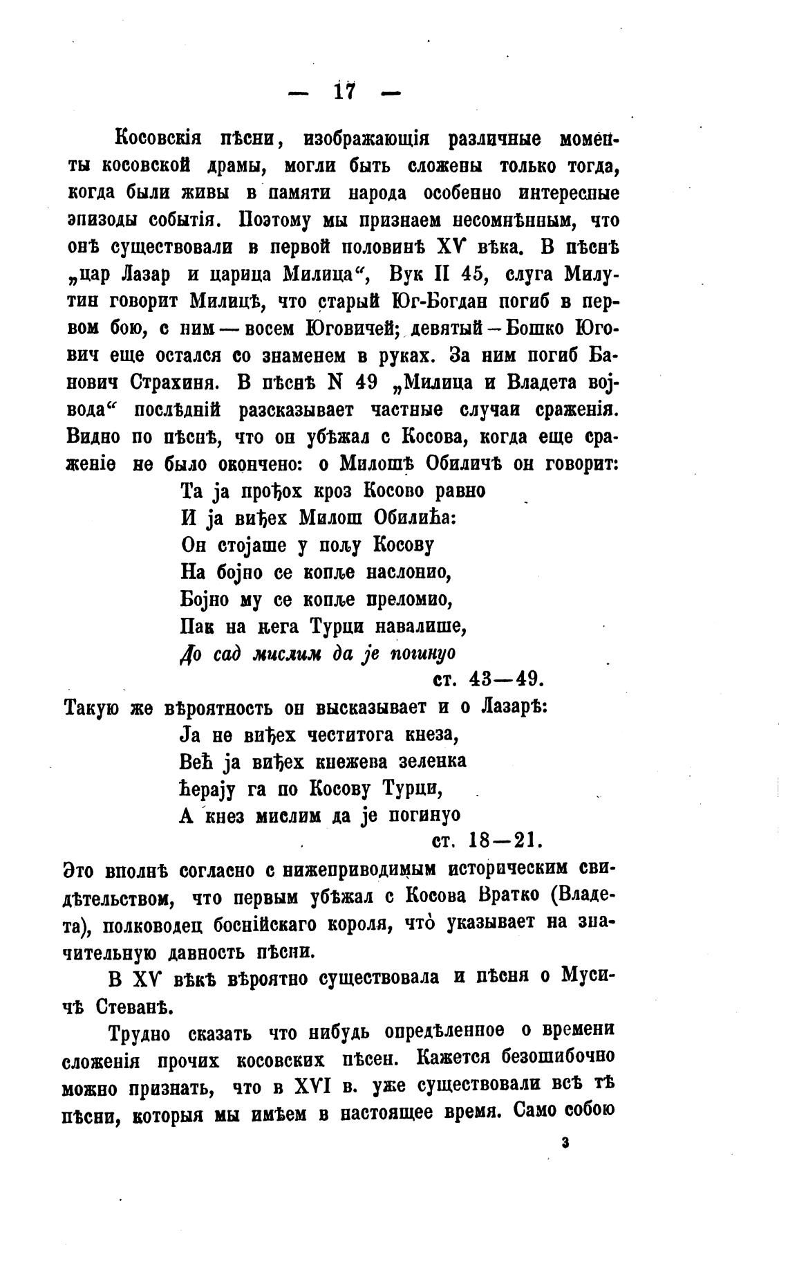 Косовскјя п“ни, различные момен-