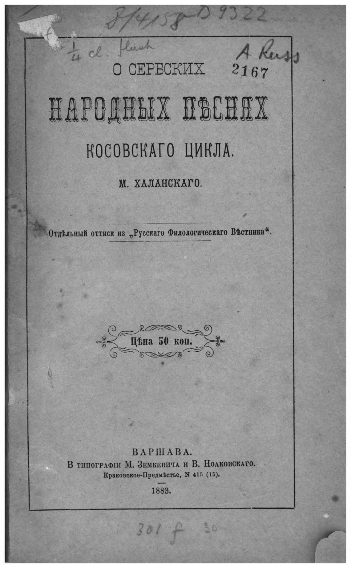 •0тдИьный оттиск из „Русскаго Филологическаго BiCTHiIRa“.
